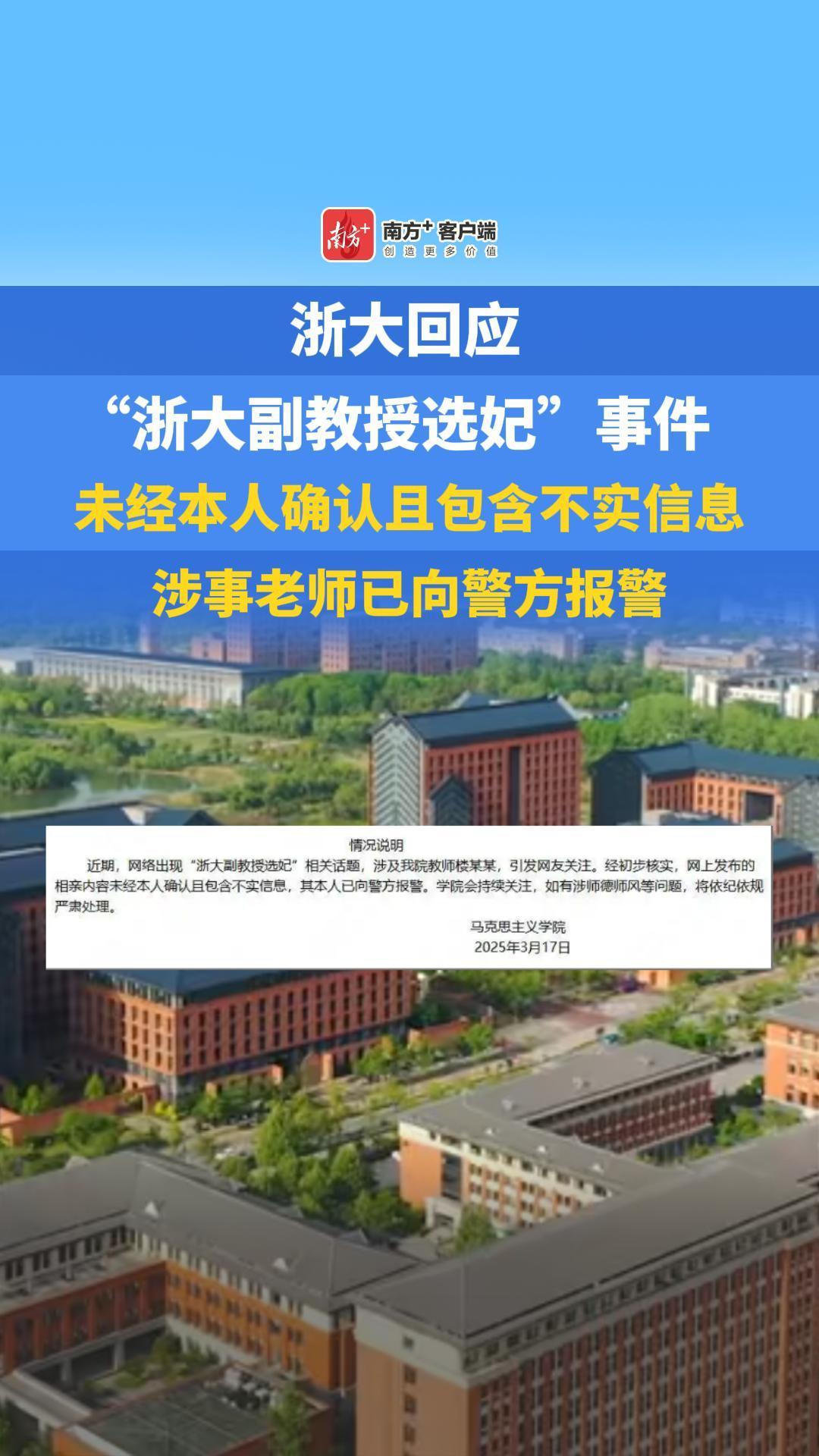 浙大回应“浙大副教授选妃”事件,未经本人确认且包含不实信息,涉事老师已向警方报警