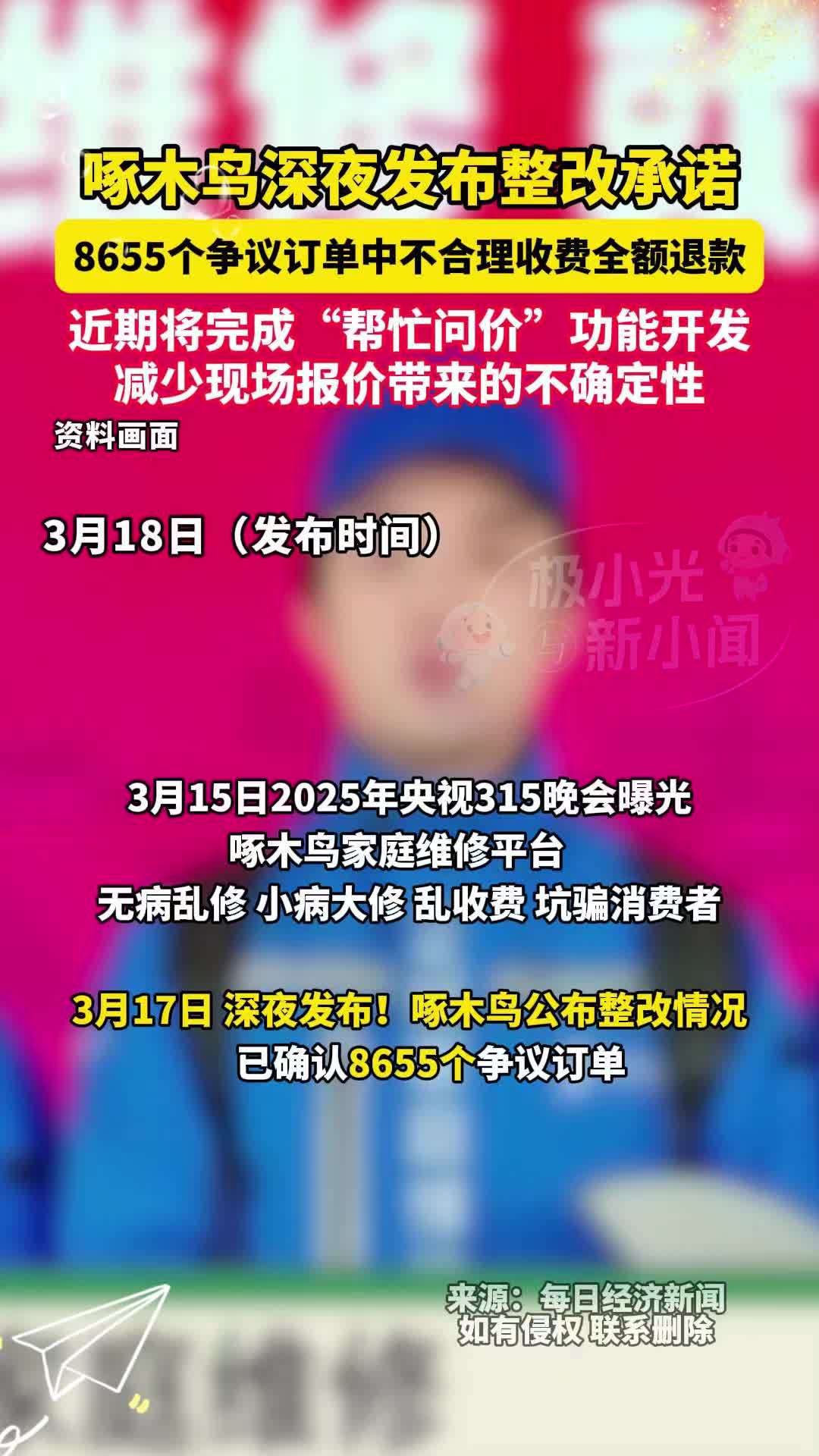 3月18日,啄木鸟发布整改承诺,8655个争议订单中不合理收费全额退款