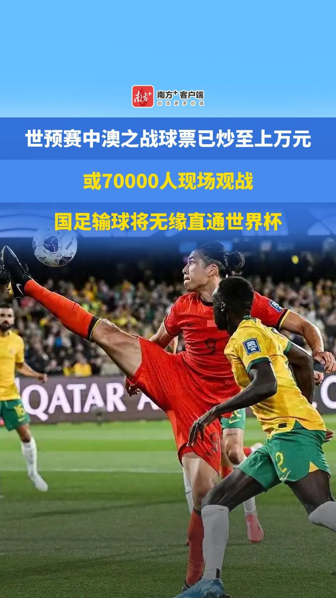 世预赛中澳之战球票已炒至上万元,或70000人现场观战