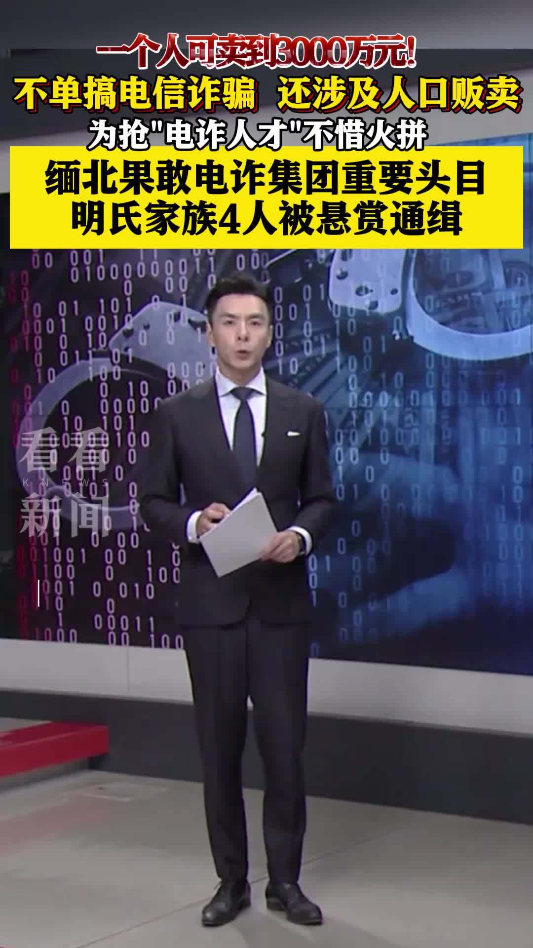 11月12日,公安部刑侦局官微发布悬赏通告称,经浙江省温州市公安机关侦查发现,明学昌、明国平、明菊兰、明珍珍系缅北果敢自治区涉我电信网络诈骗犯罪集团重要头目,对4人公开通缉,呼吁公众提供线索和协助,每一头目的悬赏金额高达10万-50万元。