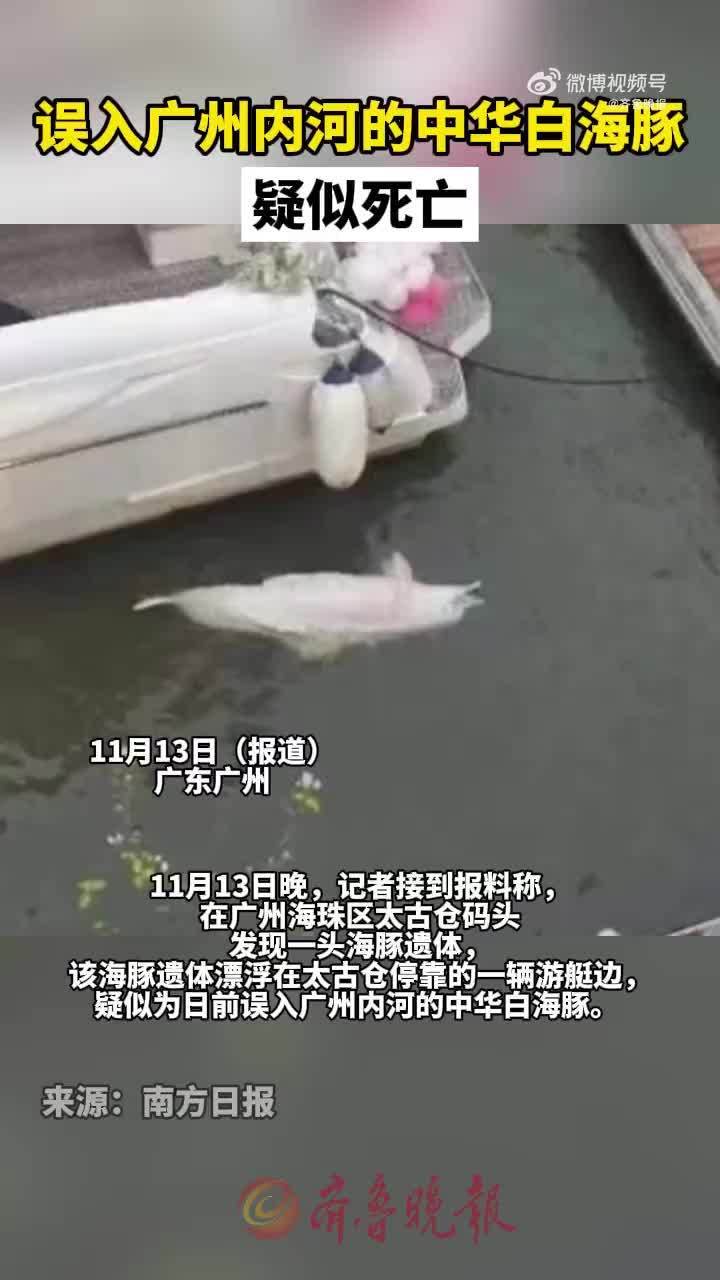 误入广州河道的中华白海豚疑死亡