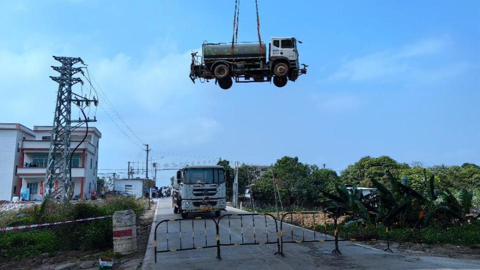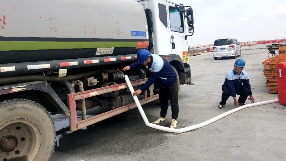 为进一步提高送水效率,粤海水务随即组织吊车将5台装满水的送水车吊至三民岛地面,直接将水送达各村应急取水点。另外5台送水车往返取水送到桥面,再通过软管为岛上移动送水车进行补充。截至23日24时,共安排送水车244车次,送水近2700立方米。