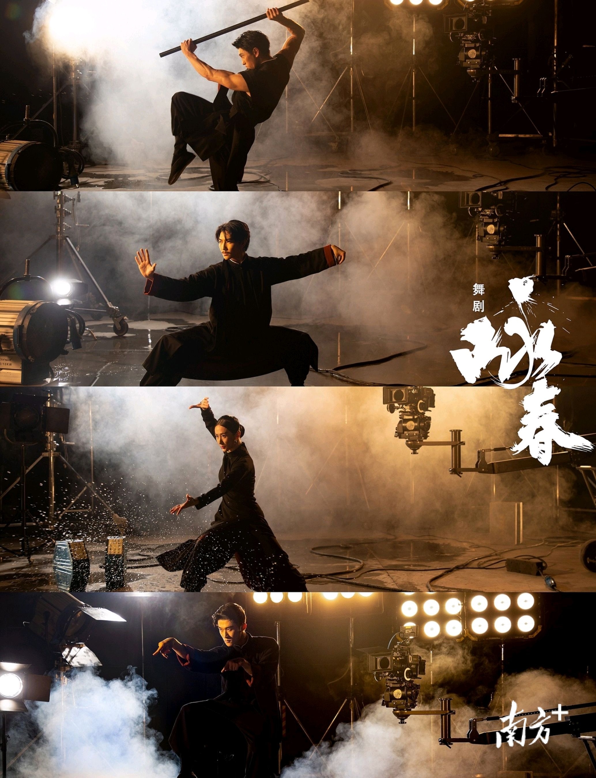而双线叙事不仅拓展了舞剧“众生相”的边界,还让观众能以“上帝视角”窥见创作者内心的图景。“《咏春》讲的是武术精神,但更多展现的是平凡人。在这部剧中,两个时代的人相向而行,彼此呼应共振,最终交汇舞台,融于一体。他们因‘英雄’聚拢,由‘追光者’展开,最终落在‘理想’。”周莉亚说,这不只是指《咏春》剧中的“电影工作者”,还包括所有艺术创作者、幕后工作者。虽然时空变迁,但追寻梦想、追寻光的精神依然存在于我们每个人身上。