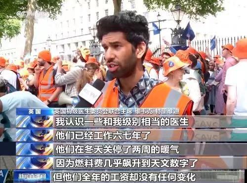 6月27日,也就是大选开始的一周前,英国英格兰地区的初级医生开始了自去年3月以来,该地区初级医生的第11次罢工。罢工组织方表示,如果计算通胀因素,与2008年相比,英格兰初级医生的实际薪酬下降超过四分之一。英国初级医生委员会联合主席维韦克·特里维迪坦言,高通胀令生活成本上升,让他们倍感压力。
