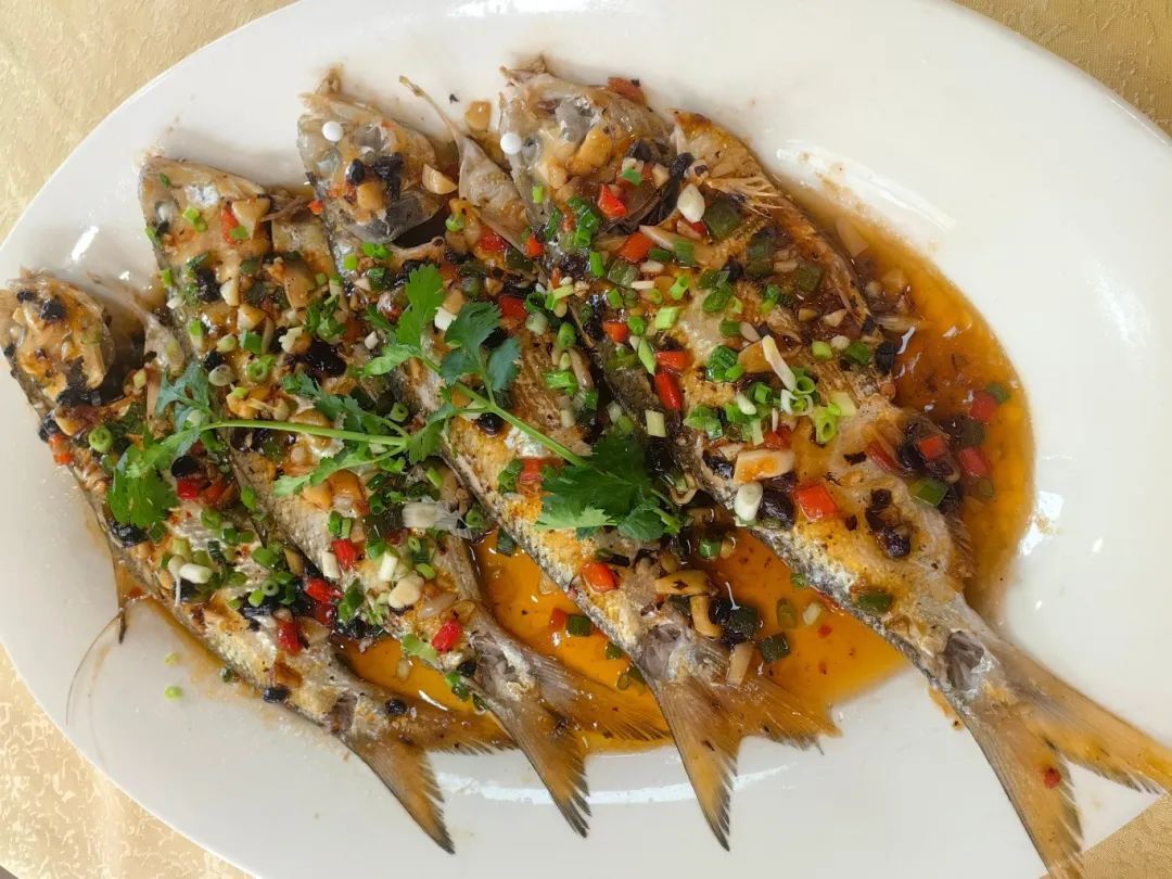 豉汁蒸黄鱼、韭菜花炒黄鱼春、凉瓜炒黄鱼春、香煎黄鱼