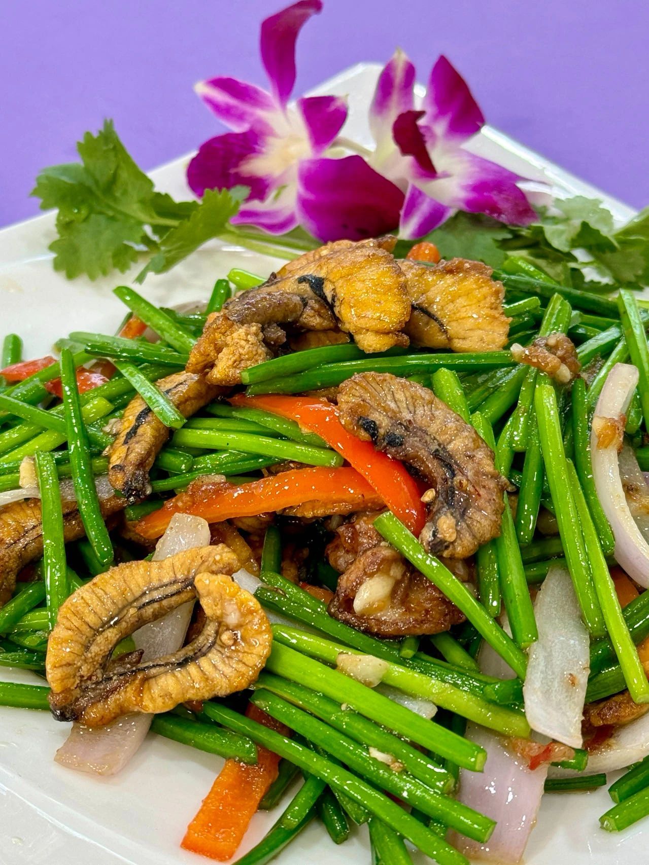 凉瓜炒黄鱼春、韭菜花炒黄鱼春、豉汁蒸黄鱼
