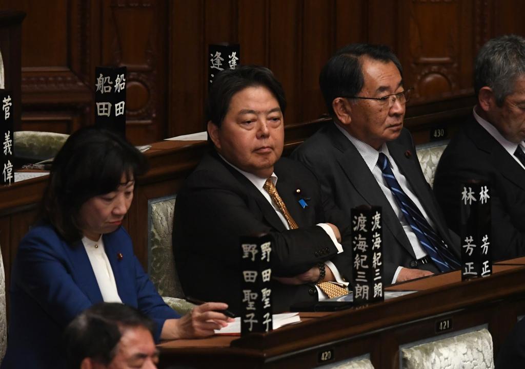 △12月13日在东京的国会闭会式上拍摄的林芳正(左二)。新华社发