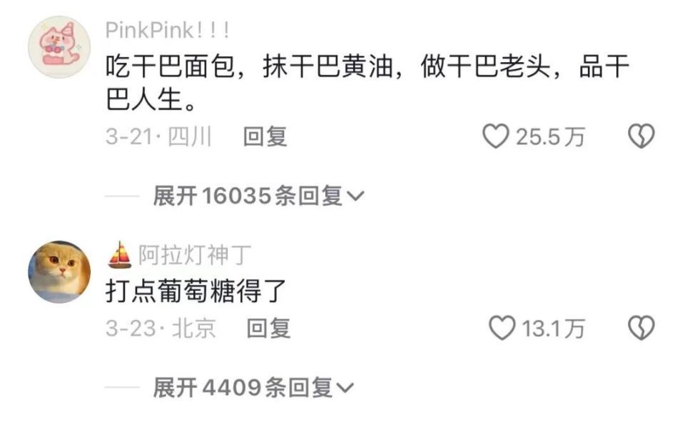 “吃干巴面包,抹干巴黄油,做干巴老头,品干巴人生。”