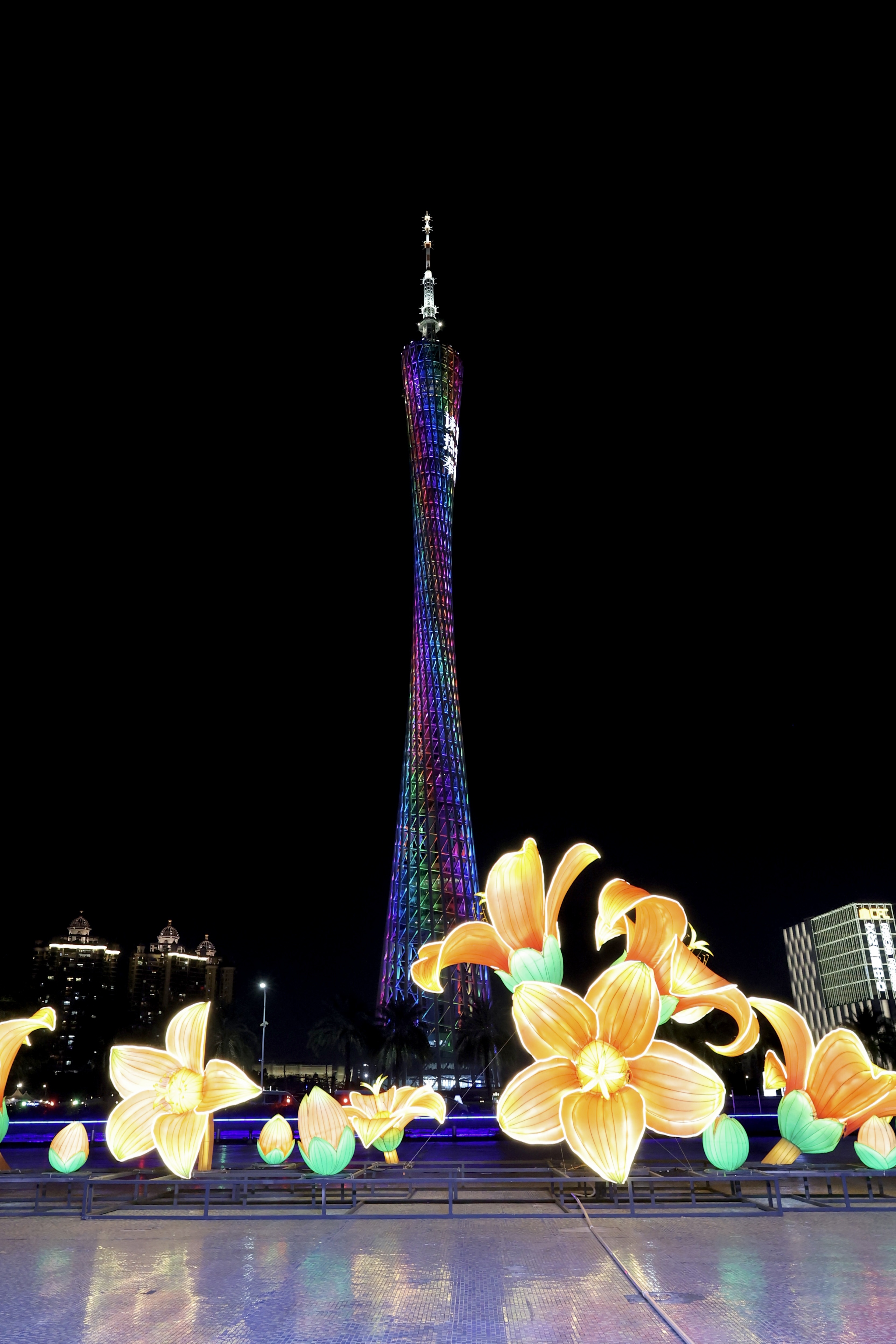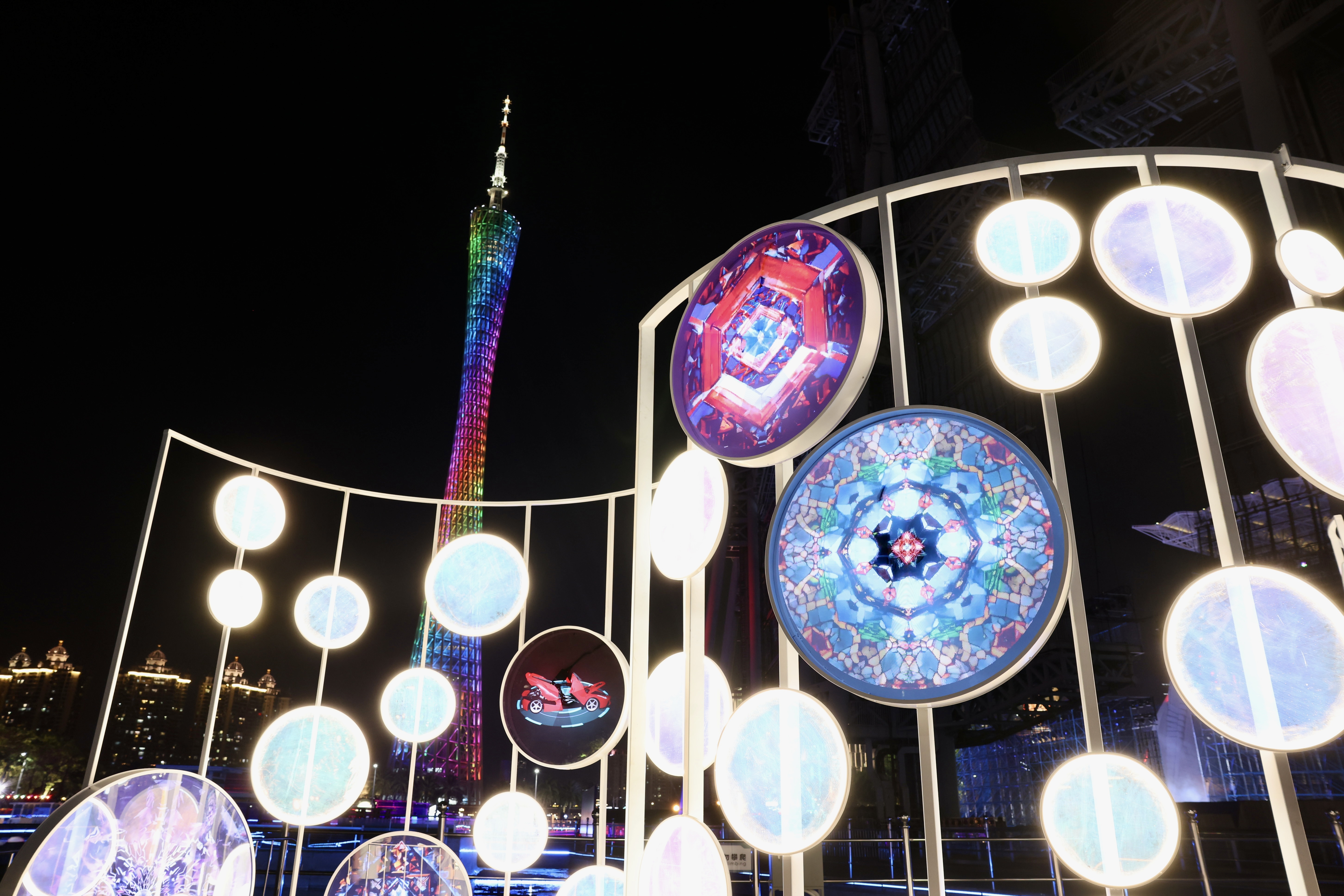 灯光作品设置通过动态与静态结合的方式,突出沉浸感和互动性,巧妙地将科技、艺术、光影、文化相融合,展现活力湾区和新彩广州的魅力。