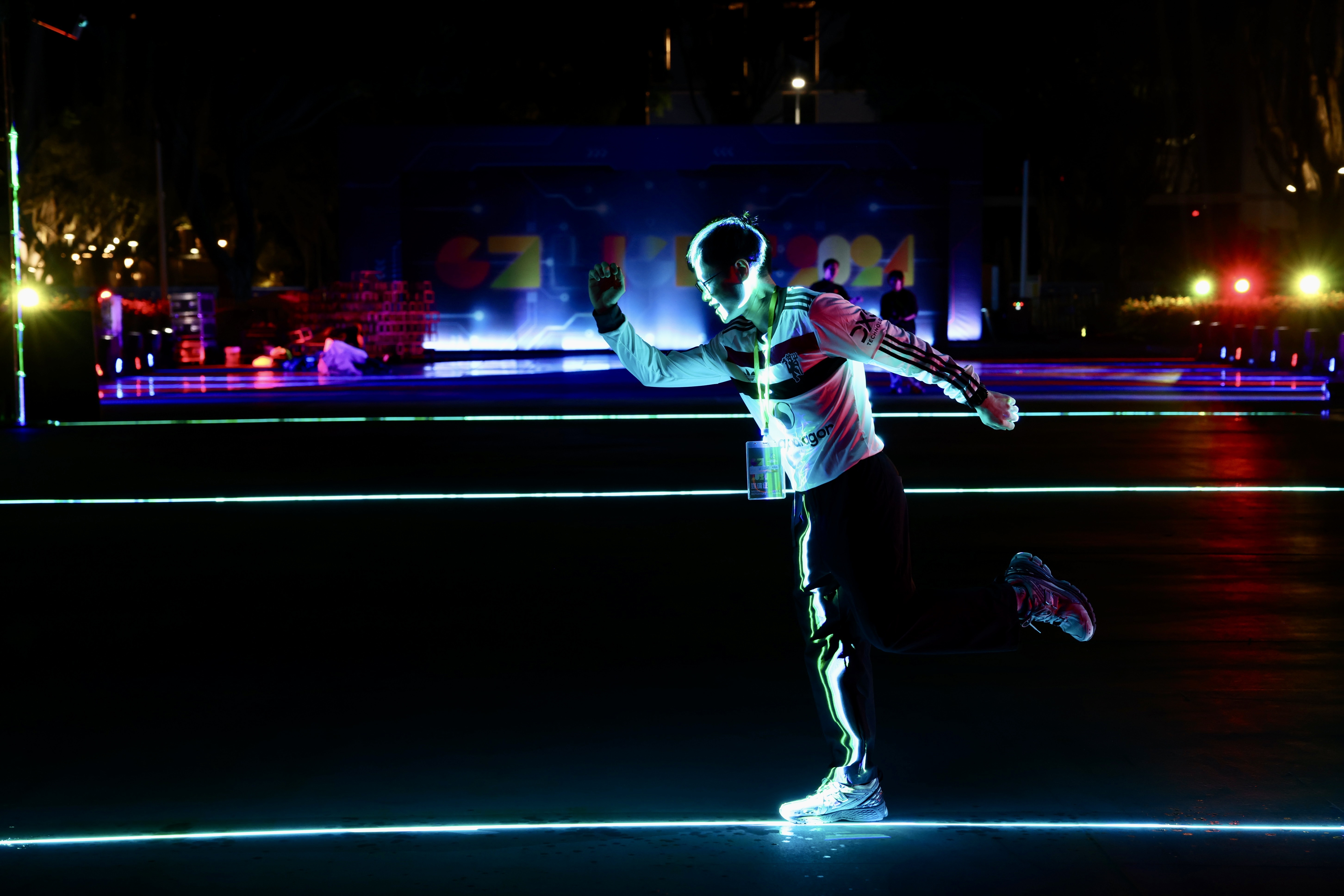 巴黎赛场上中国奥运健儿的矫健身姿犹在眼前,我们又将迎来十五运会和残特奥会,接踵而至的体育盛会激发着全国人民的体育热情。本作品将灯光装置与运动元素相结合,旨在通过视觉艺术的形式,进一步点燃这份激情,让体育精神在城市的每一个角落闪耀。