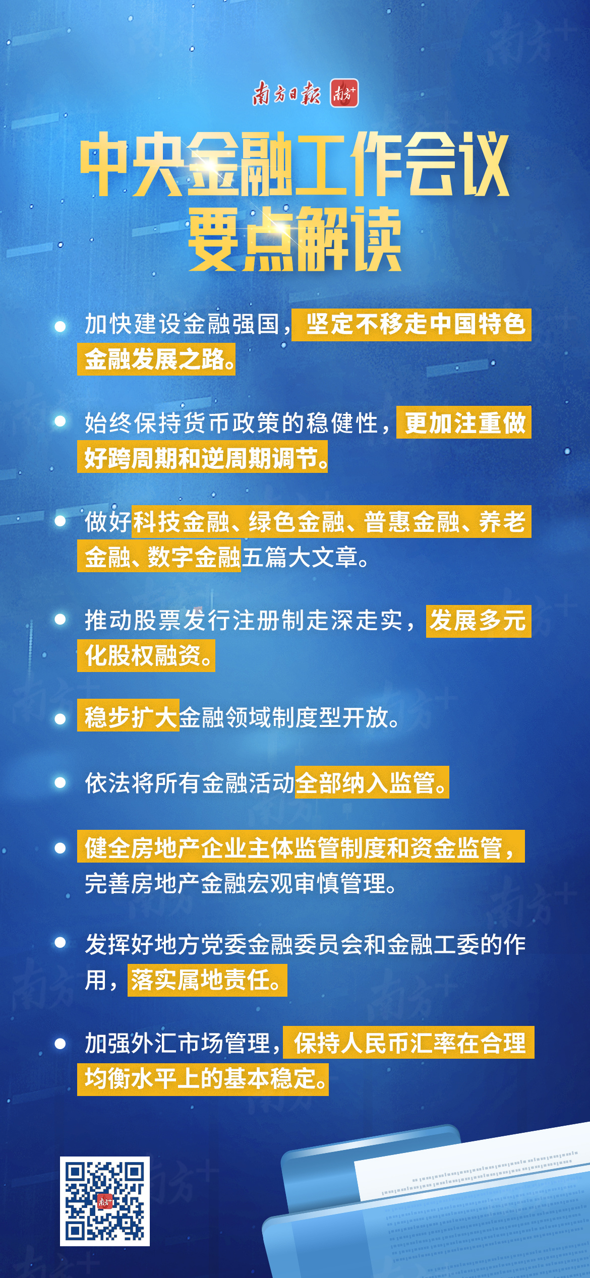 作为金融系统最高规格的会议,历次全国性的金融工作会议均对我国下一步重大金融改革方向和政策“定调”,对金融业长期发展具有深刻影响。结合本次会议的内容,我国金融领域将呈现怎样的发展格局?