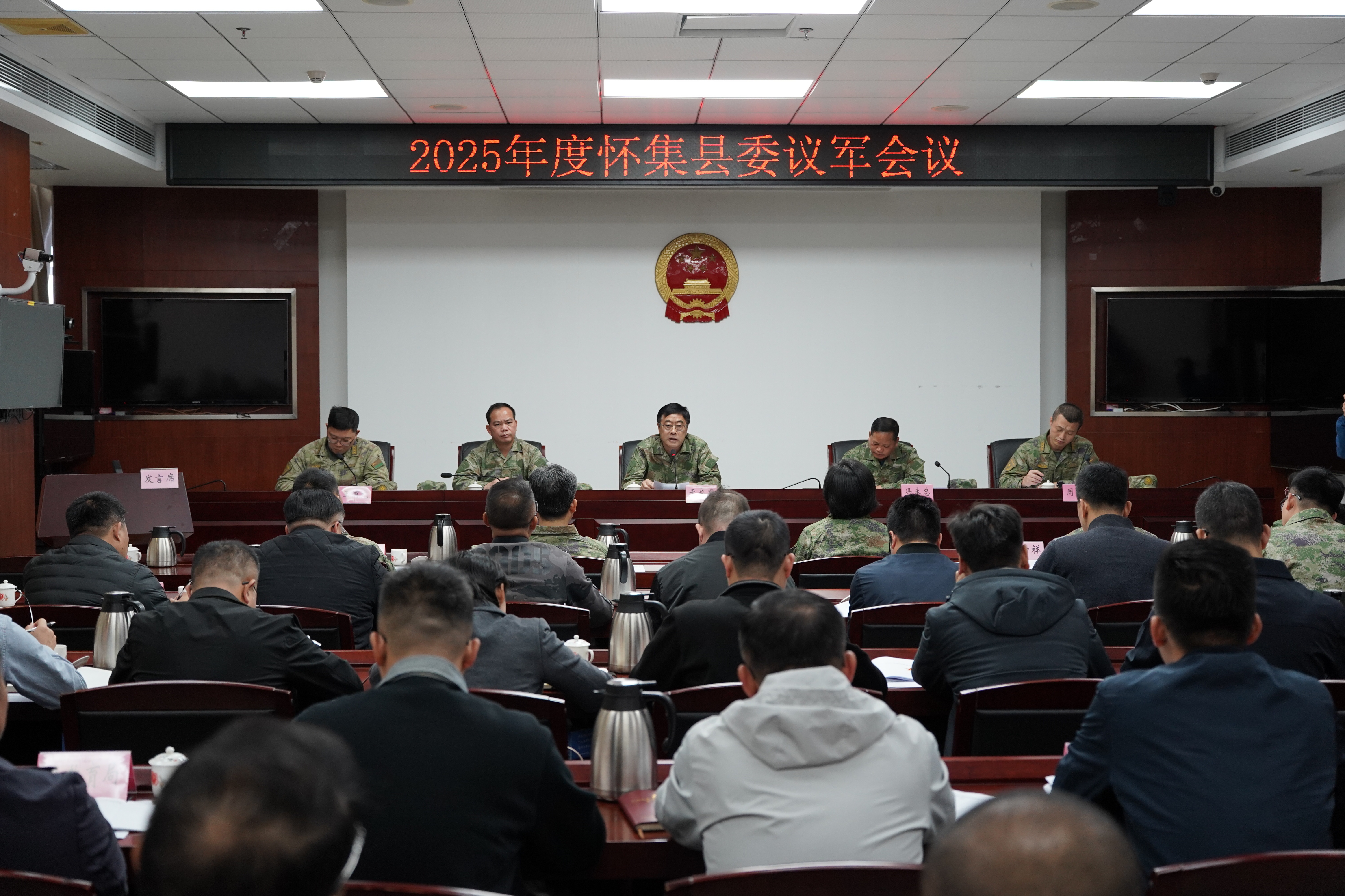 近日,肇庆怀集县召开2025年度县委议军会议暨“军事日”活动,宣布新任基层武装部政治教导员命令,研究武装工作需要重点关注和解决的问题,强化党管武装,聚力备战打仗,推动全县武装工作再上新台阶。