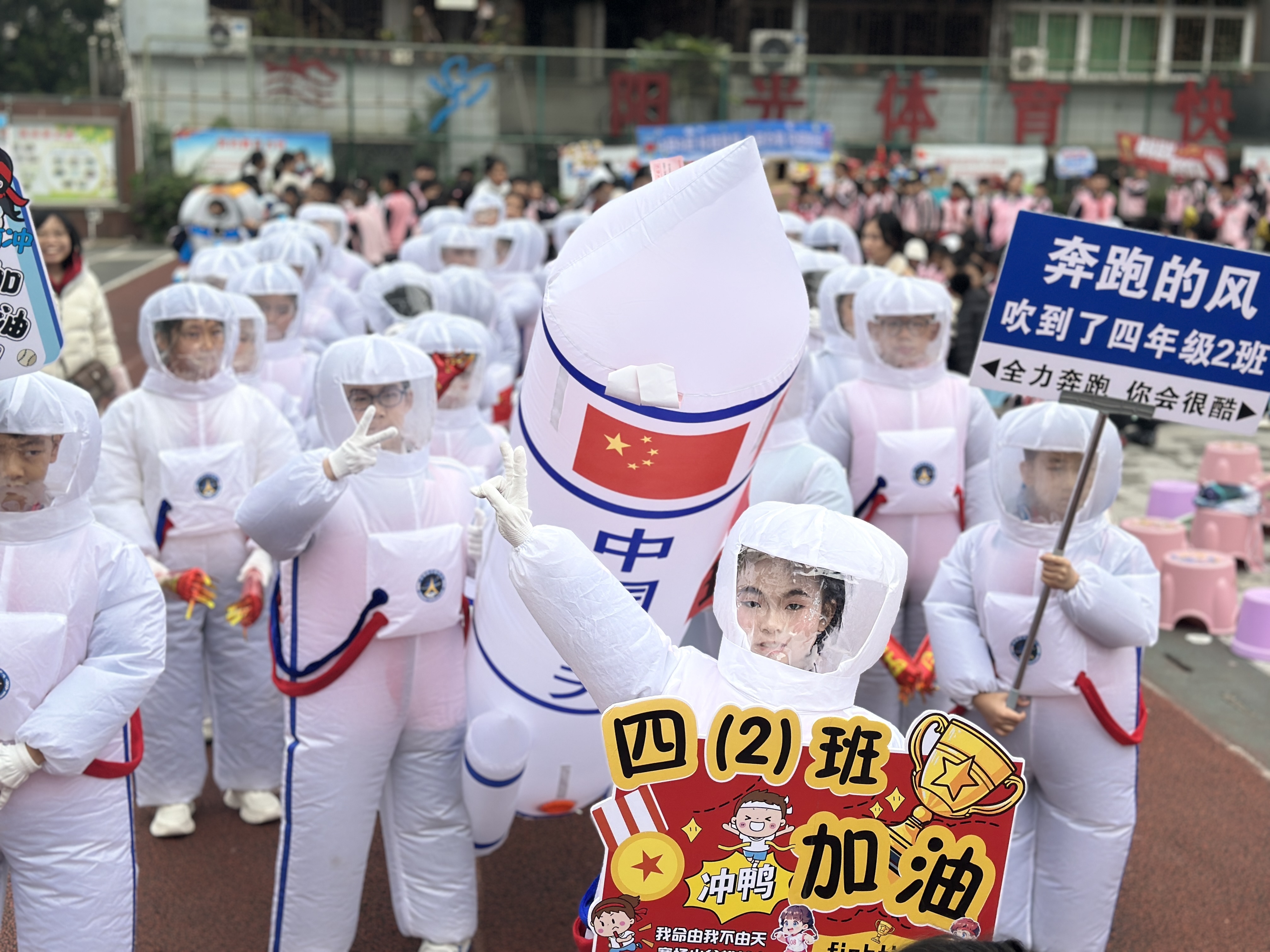 开幕式上,激昂的《运动员进行曲》奏响,国旗方阵步伐铿锵,校旗队意气风发,正式拉开入场式序幕。各班方阵表演匠心独运、精彩连连。学生们步伐矫健、队列整齐,口号嘹亮、振奋人心。从充满创意的角色演绎到整齐划一的队形变换,每个班级都以独特方式表达对体育运动的真挚热爱,充分展现了湛江四小学子积极昂扬、朝气蓬勃的精神风貌,为运动会增添了一道道亮丽的风景。