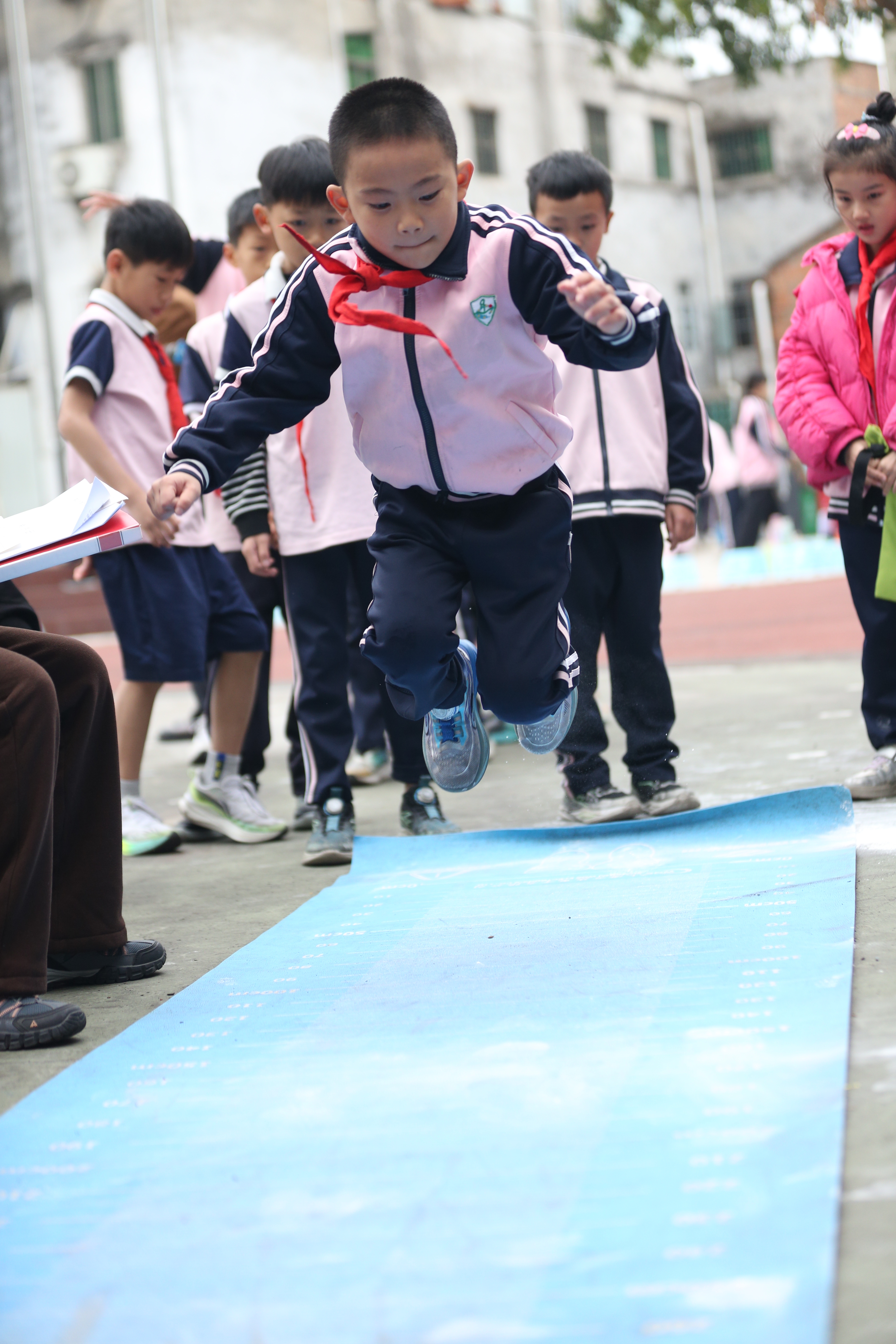 发令枪响,各项比赛正式开始。跑道上,运动健儿们如离弦之箭,展现着速度与激情;立定跳远前,他们奋力腾跃,划出优美的弧线;彩绳在脚下翻飞如银蛇狂舞,孩子们身轻如燕。赛场外,啦啦队的加油声、呐喊声此起彼伏,气氛热烈非凡。