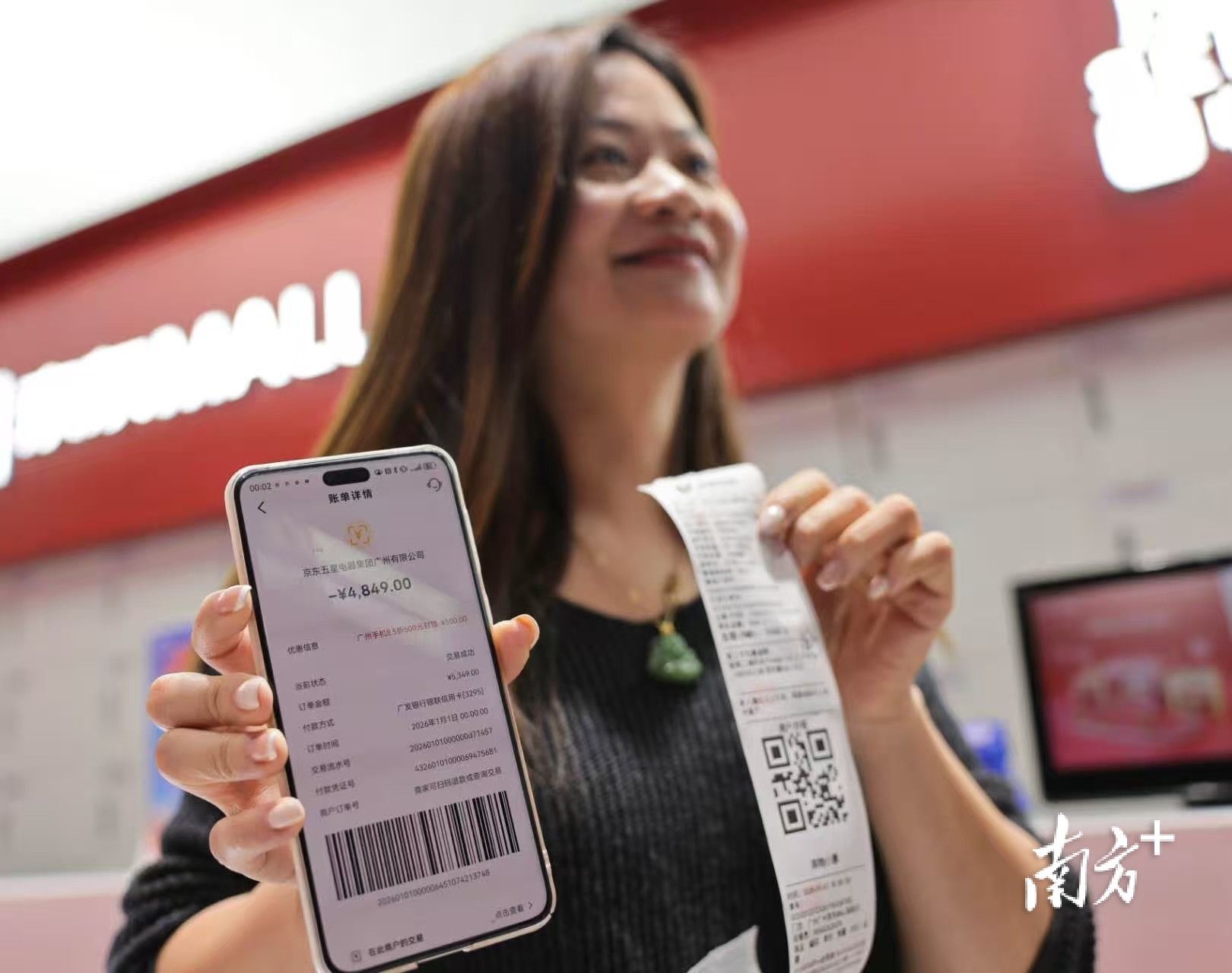 2026年1月1日零点,广州京东MALL店内,一笔特殊的订单完成——市民吴女士成功下单一台心仪的手机,成为2026年全国首位享受国家以旧换新线下家电数码补贴(下称“国补”)的消费者。“新年零点一过就下单了!”吴女士兴奋地展示订单。她购买的原价5999元的手机,在享受企业优惠及品牌补贴后,通过银联云闪付领取资格并支付,又额外享受国家补贴500元,实际支付仅4849元,“还参加了抽奖活动,非常划算!”