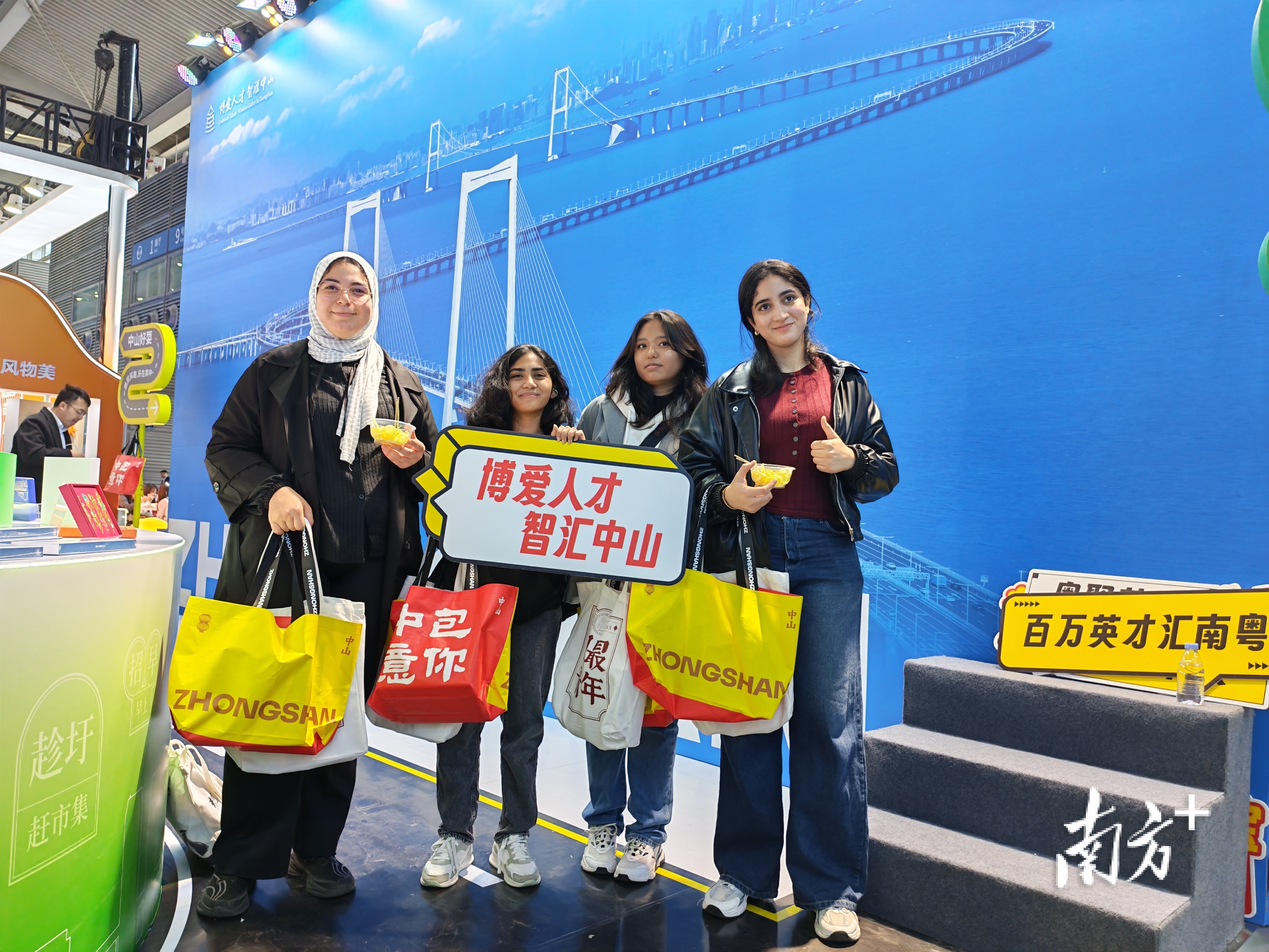 来自摩洛哥的四名哈尔滨工业大学大一学生,专程跟随学校班车来到广东省2025年“百万英才汇南粤”秋季大型综合招聘会,他们手持展会手册,循着中山展区的灯笼光影而来。被中山展区的“科技感”与“烟火气”深深吸引,全程满是惊叹与好奇。