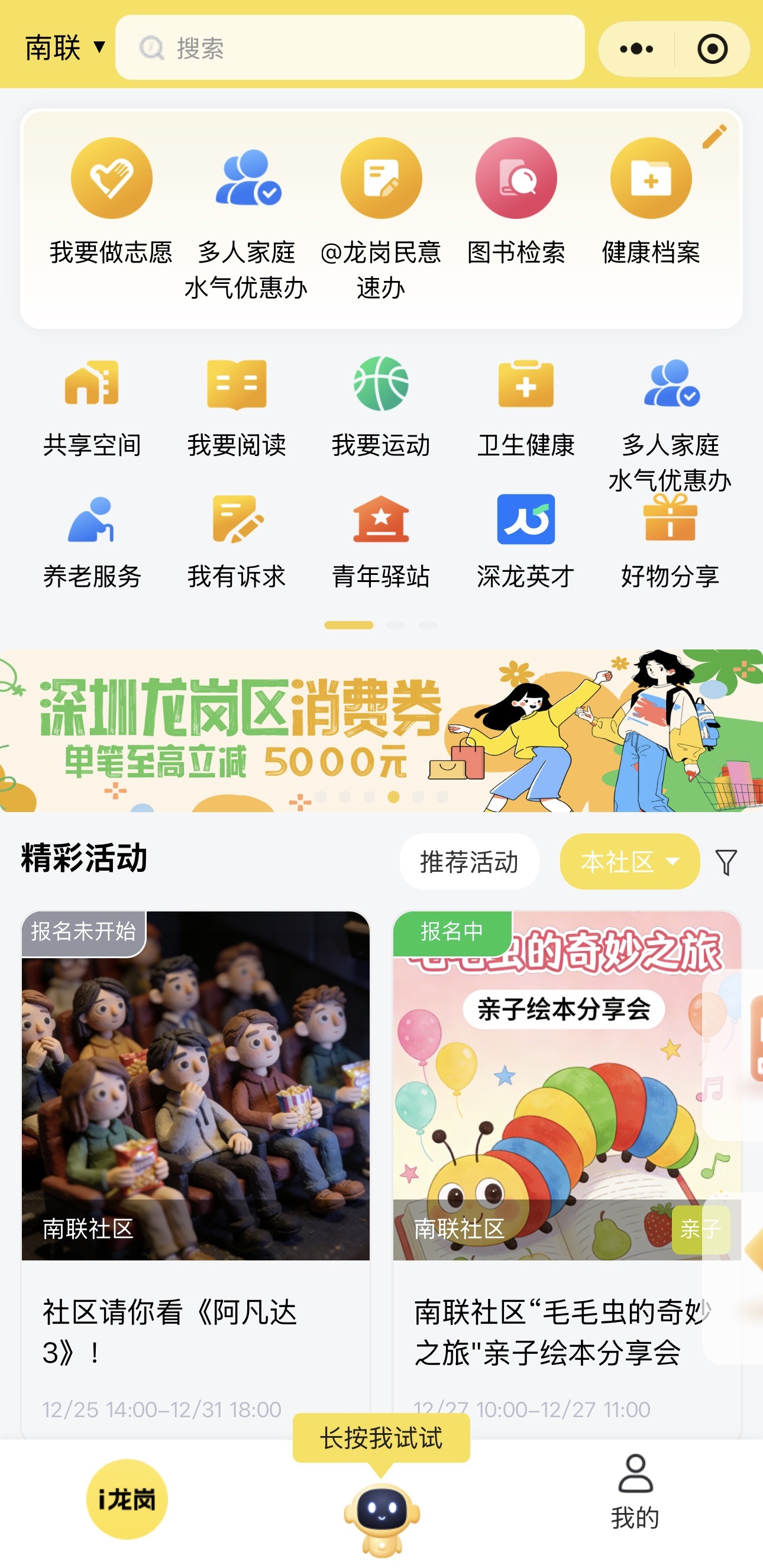 服务融入生活场景。围绕居民日常所需,平台陆续上线21个服务应用。“精彩活动”“共享空间”“志愿港湾”“我要托育”等成为热门栏目,显著提升了社区服务的可及性与满意度。