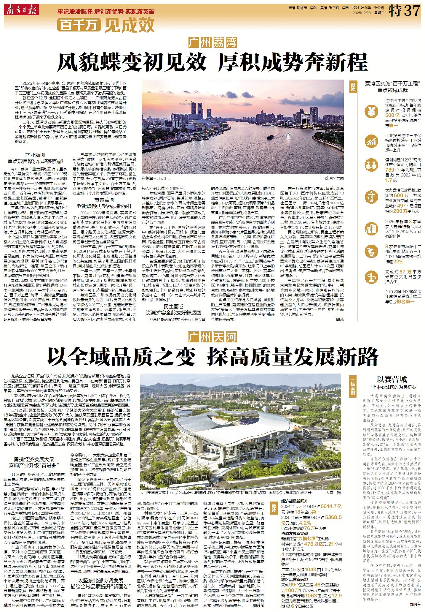 就在这个12月,全国首个滨江太古项目——广州聚龙湾太古首开区将亮相;粤港澳大湾区广佛极点核心区首家山姆店将在荔湾开业;途经荔湾的地铁22号线即将开通;坑口城中村首个融资地块顺利开工……这是奋进“百千万工程”的岁月缩影,在这个新征程上荔湾日程满满,终于迎来了收获之年。