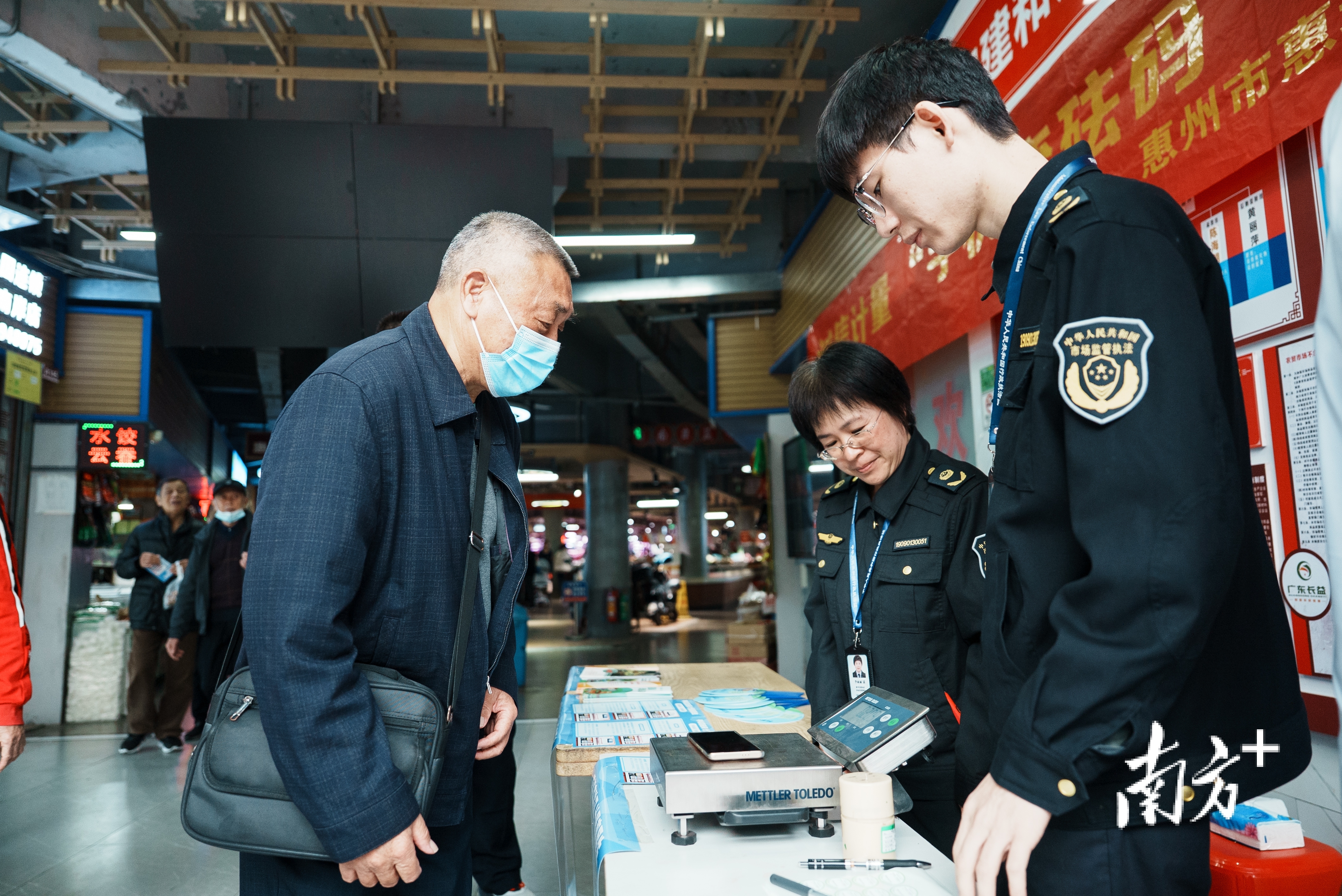 手机变砝码,计量惠民生。 据悉,该便民活动近期已在全市逐步展开,连日来,惠州市市场监督管理局、市质计所联动惠城、大亚湾、仲恺等多个县(区)市场监督管理部门深入农贸市场开展便民活动。惠州市市场监督管理局市场科有关负责人介绍,当前活动正在全面推广,并逐步建立“手机变砝码” 推广应用长效机制,成为市场常态便民服务,齐抓共管、让市民安心消费,用精准计量切实守护群众的“菜篮子”和“米袋子”。
