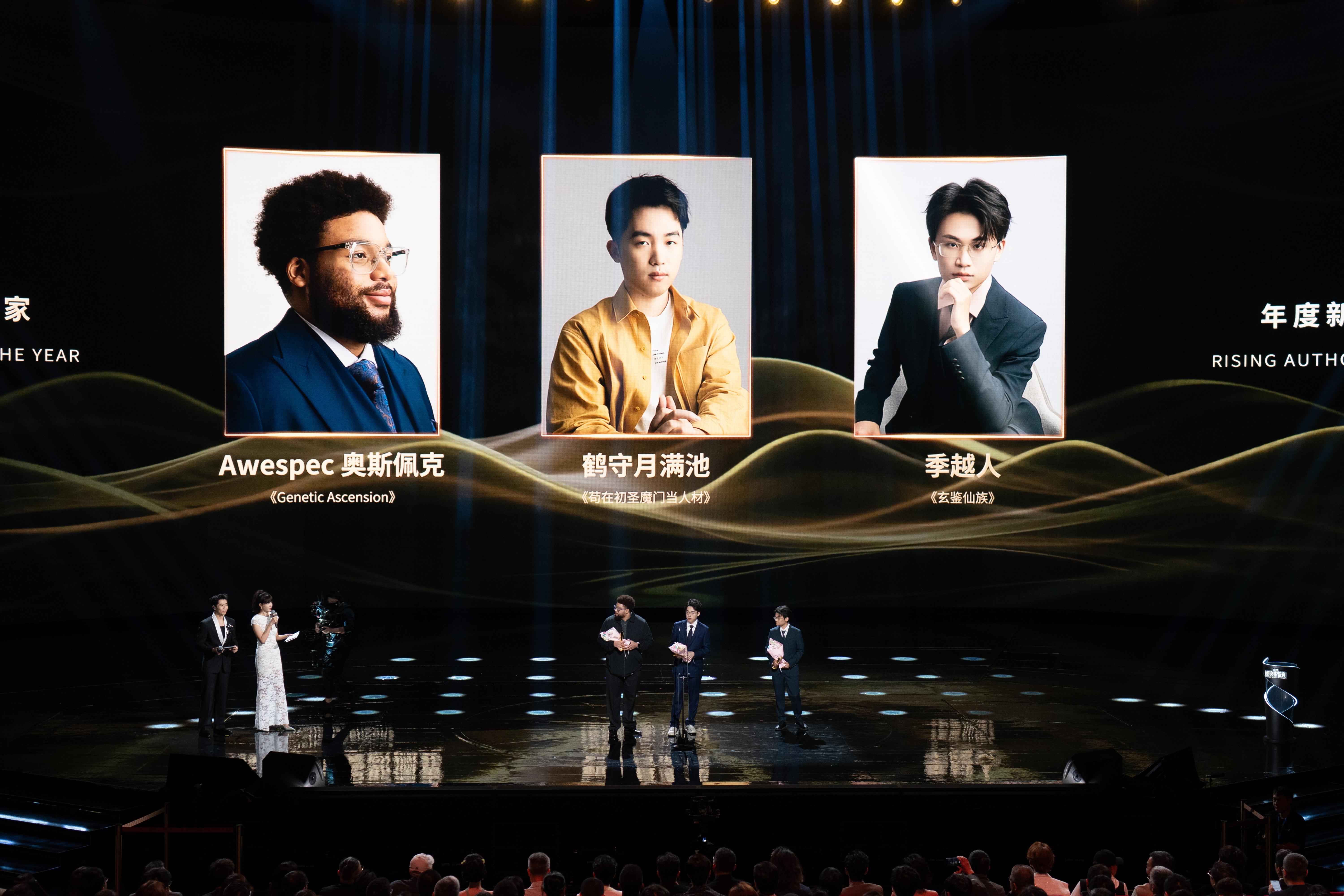在“年度新锐作家”荣誉环节,《Genetic Ascension》作者Awespec奥斯佩克、《苟在初圣魔门当人材》作者鹤守月满池、《玄鉴仙族》作者季越人等三位95后作家登上舞台,成为阅文新生代作家崛起的生动写照。数据显示,2025年阅文新签约作家中95后占比高达65%,“十二天王”阵容创下史上最年轻纪录。