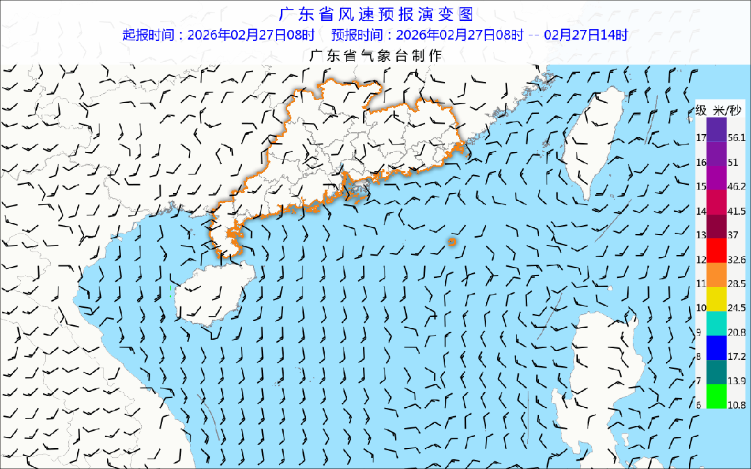 海上天气预报:27日半夜到28日夜间,台湾海峡、粤东海面、珠江口以东海面东北风6~7级阵风8级,29日白天大风减弱。27日到3月3日,粤西海面和琼州海峡早晚有轻雾,部分时段有雾。