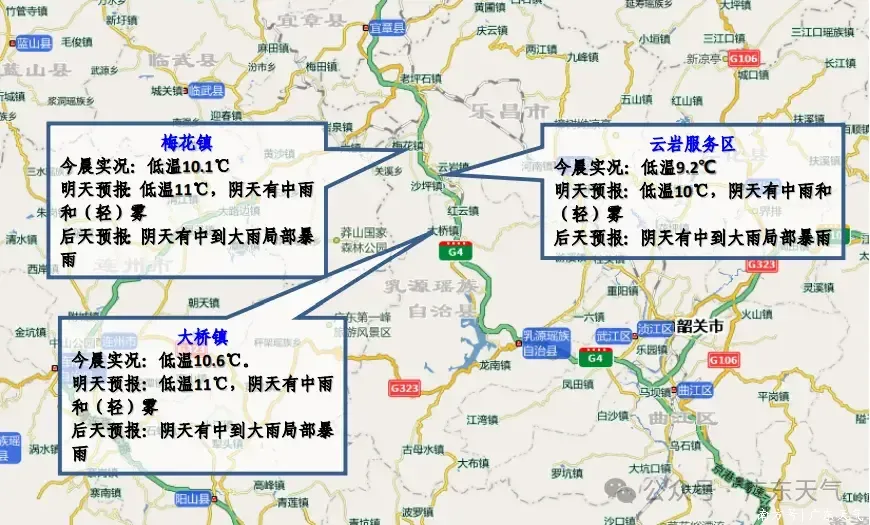 近期天气多变,请留意最新预报信息,出门前可打开“缤纷微天气”小程序,查看临近天气预报。另外,广东及湖南、江西、广西、福建等周边省份降雨频繁,雨雾时能见度差,道路湿滑,开车请注意交通安全。