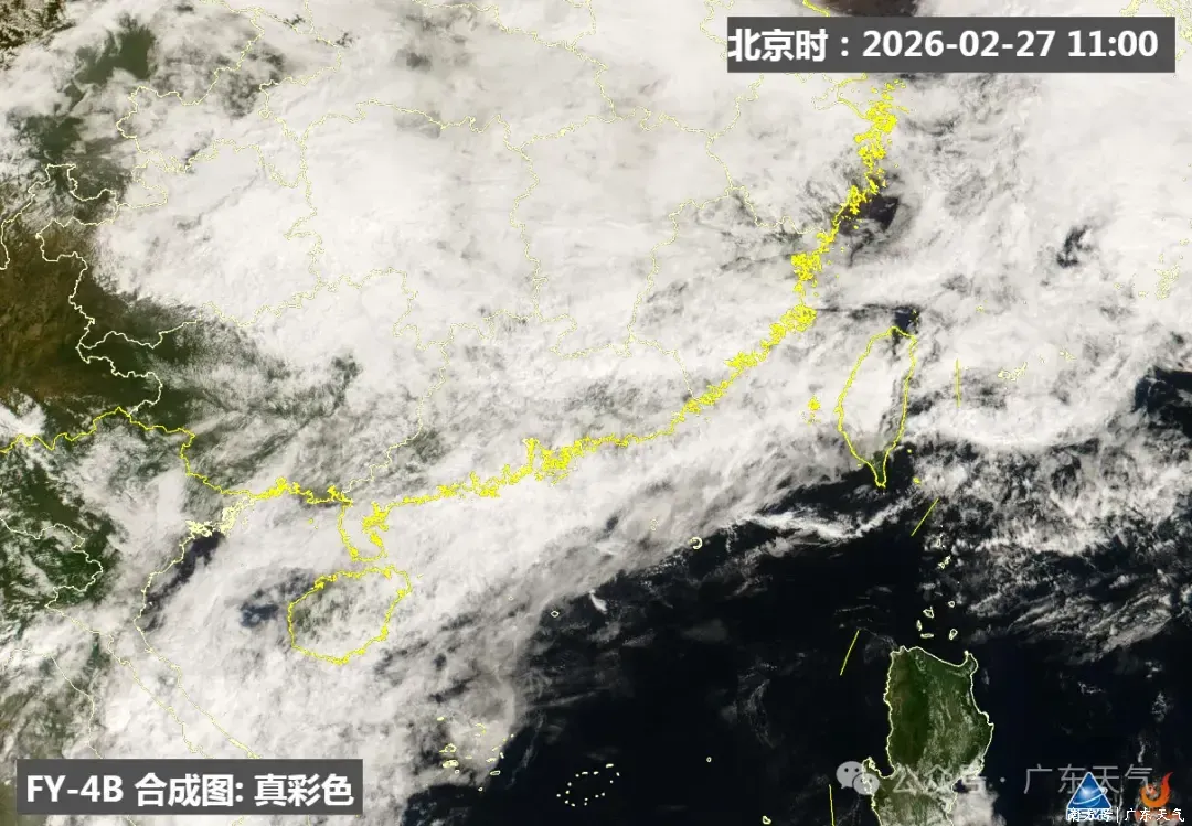 从今天(27日)上午的雷达图可见,雨带已东移出海,因此今天白天广东大部云量较多,阳光间中露脸,只是偶有分散小雨。