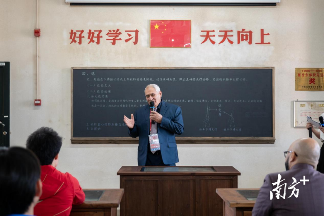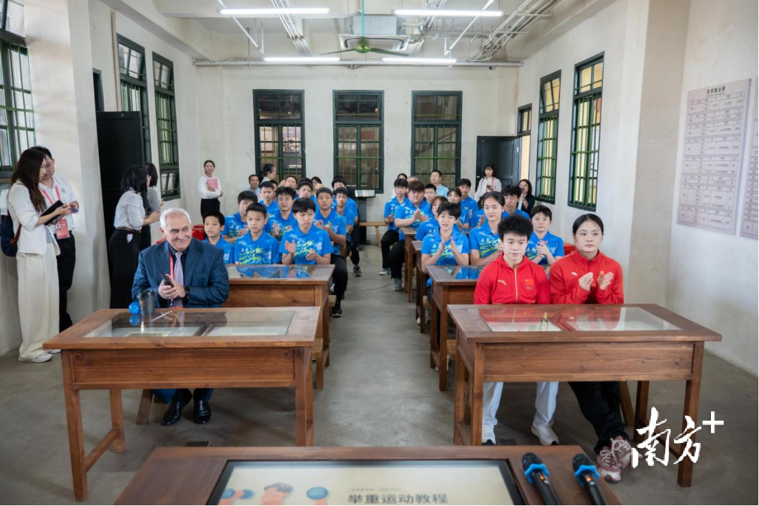 随后,国际举联代表们来到举重博物馆“旧体校”三楼课室,与石龙体校的学生们展开互动。与学生问答互动之余,国际举联主席扎路还分享了自己作为老一辈举重运动员一路走来的心得与赛事经验,鼓励年轻运动员坚持梦想、勇于拼搏。