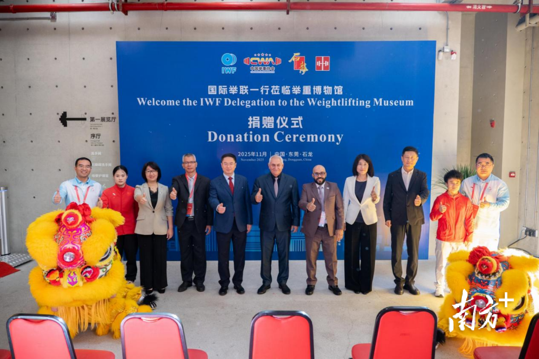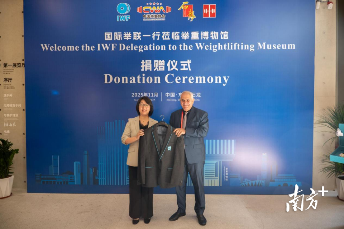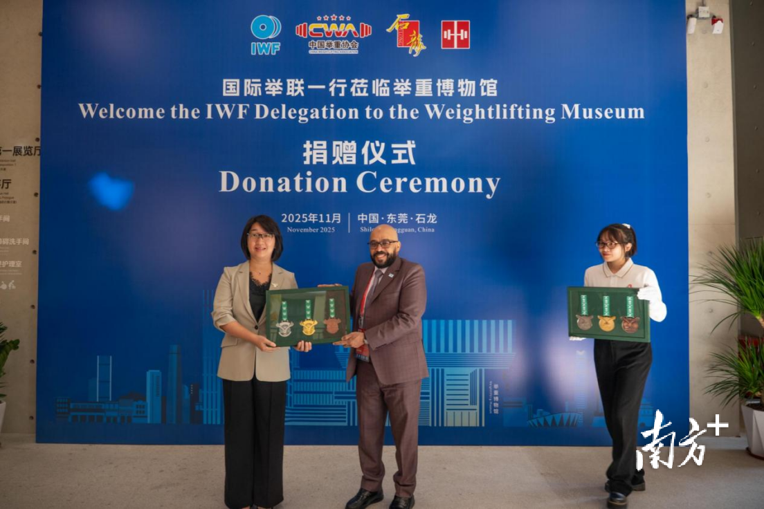 11月16日,国际举重联合会代表团一行到访位于东莞石龙的举重博物馆。交流期间,国际举联主席扎路向举重博物馆捐赠了2012年伦敦奥运会外套夹克、伊斯兰团结运动会吉祥物;国际举联副主席阿尔哈比捐赠了2021年沙特阿拉伯世界少年举重锦标赛奖牌、2023年国际举联举重世锦赛暨2024年巴黎奥运会举重资格赛奖牌。