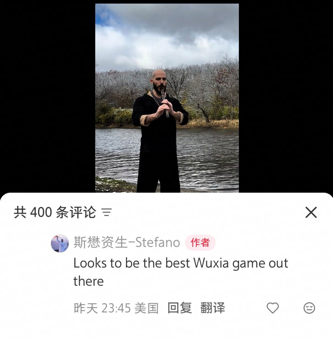 与此同时,海外玩家也展现出对中国文化的深度热爱与自发传播。身在美国的Stefano用中国传统乐器——箫,深情吹奏了《燕云十六声》的登陆曲,以表达对游戏在西方上线的欢迎。他说,虽然身为外国人,也深深敬仰中国文化,《燕云十六声》看起来是目前最棒的武侠游戏。