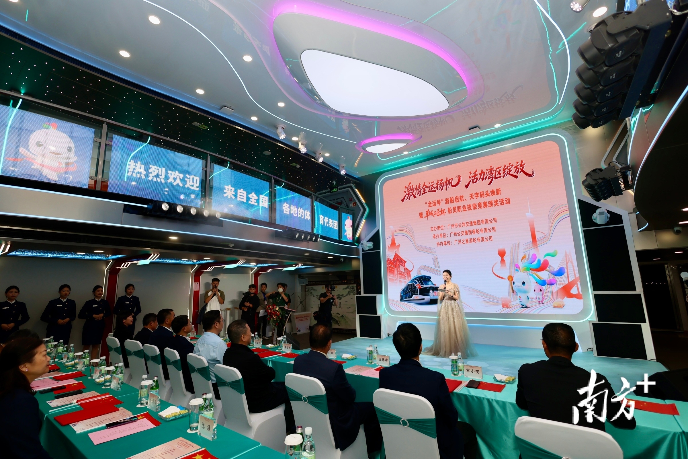 10月28日晚,广州天字码头旁,“激情全运扬帆,活力湾区绽放”——“全运号”新能源游船首次正式启航,天字码头焕新暨“羊城工匠杯”船员职业技能竞赛颁奖活动同步举行。