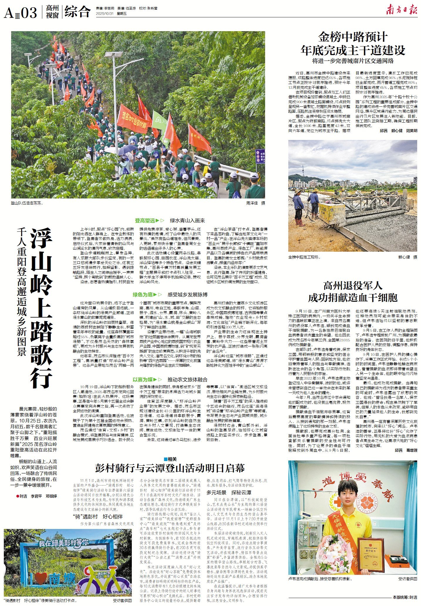 速览《南方日报·高州视窗》第208期精彩报道(点击标题即可查看原文)第1版首批超700个车位“智”解停车难停车不难 回家更暖第2版解锁基层治理“善治密码”用法治书写文明乡村答卷第3版浮山岭上踏歌行金榜中路预计年底完成主干道建设高州退役军人成功捐献造血干细胞第4版年过九旬刻刀未停 木屑深处乡情流淌 南方日报、南方+客户端原创,未经授权不得转载 编辑 何嘉琪 订阅后可查看全文(剩余80%)