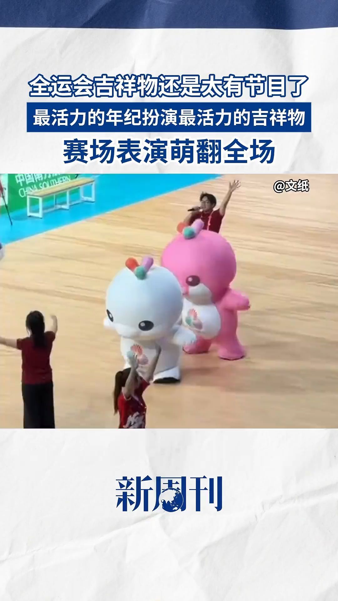 各种俏皮的动作和表情,随机发挥的自由风格,让原本呆板的吉祥物皮套不再是活动的背景板,而成为充满个性和生命力的活物,是跟观众一起看比赛、耍宝解闷的朋友。看了它们几天的网友,甚至能通过它们的动作幅度和互动风格,分辨今天是哪位“内胆”当班。