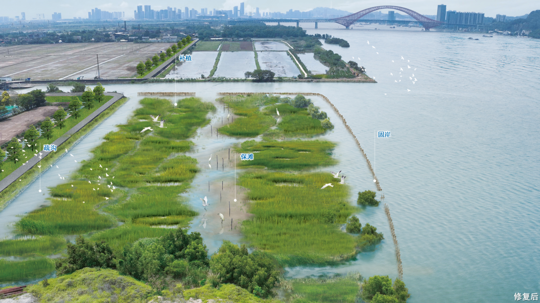 遵循城市生命共同体理念,在南沙湿地周边5公里区域,识别3处栖息地,营造生物友好型植物群落,扩容超100公顷的鸟类优质栖息地,预计修复后鸟类密度将提升20%,形成河口超级候鸟家园。