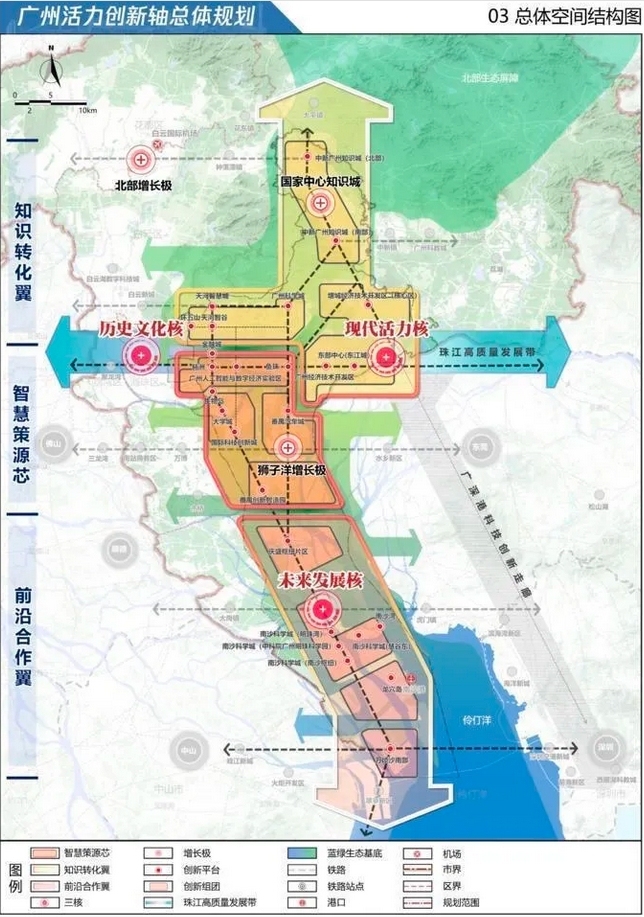 近日,《广州市国土空间近期实施规划(2026—2030年)》公示,提出加快活力创新轴科创要素集聚,北段建设高水平产业园区,强化创新转化与全链条配套;中段打造“学研创服”一体化的创新生态社区;南段完善枢纽与科研设施,共建开放合作平台。