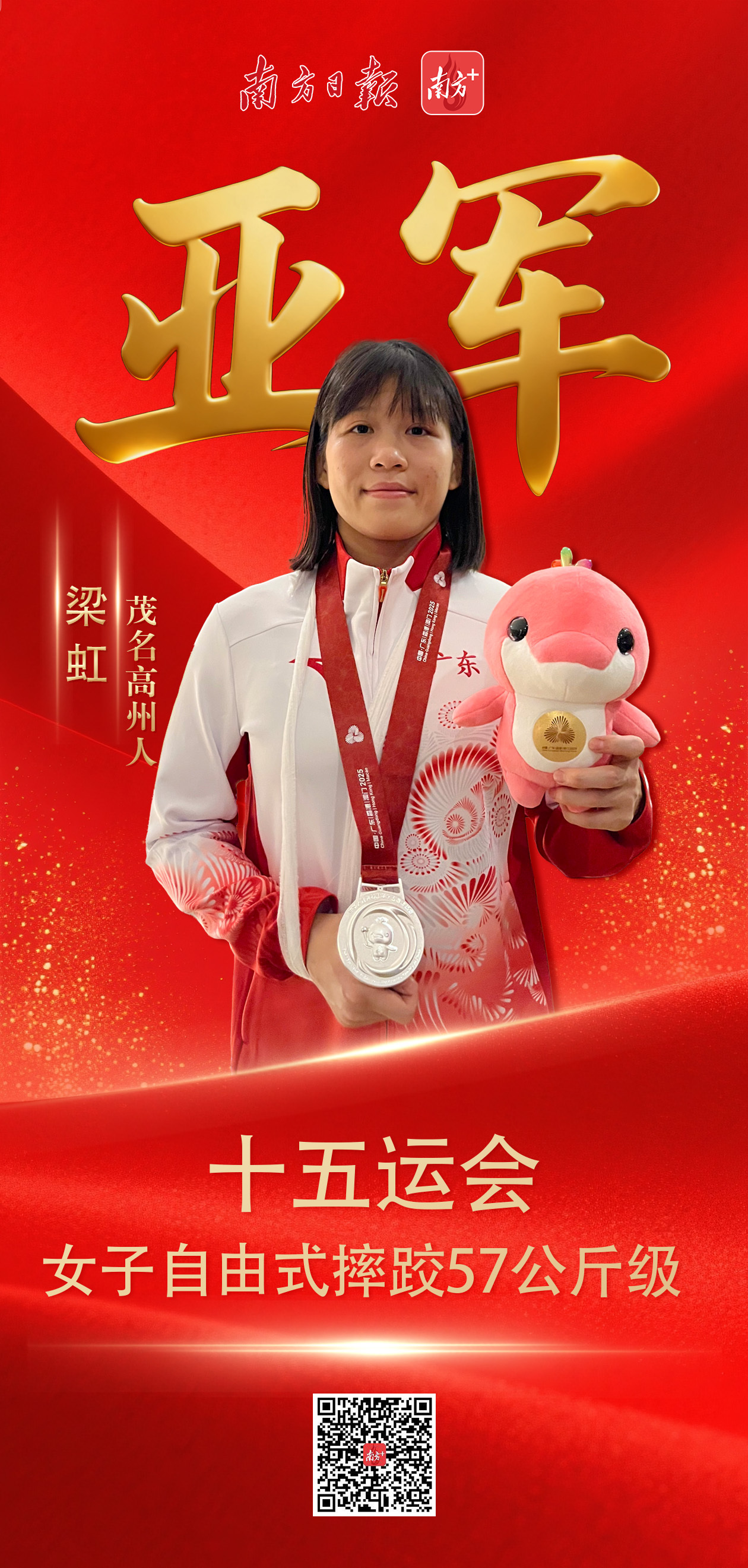 11月10日17时30分左右,第十五届全国运动会竞技组摔跤项目女子自由式比赛在清远体育中心体育馆完赛,茂名高州姑娘梁虹代表广东队在女子自由式57公斤级决赛中,夺得银牌,为家乡添荣誉。