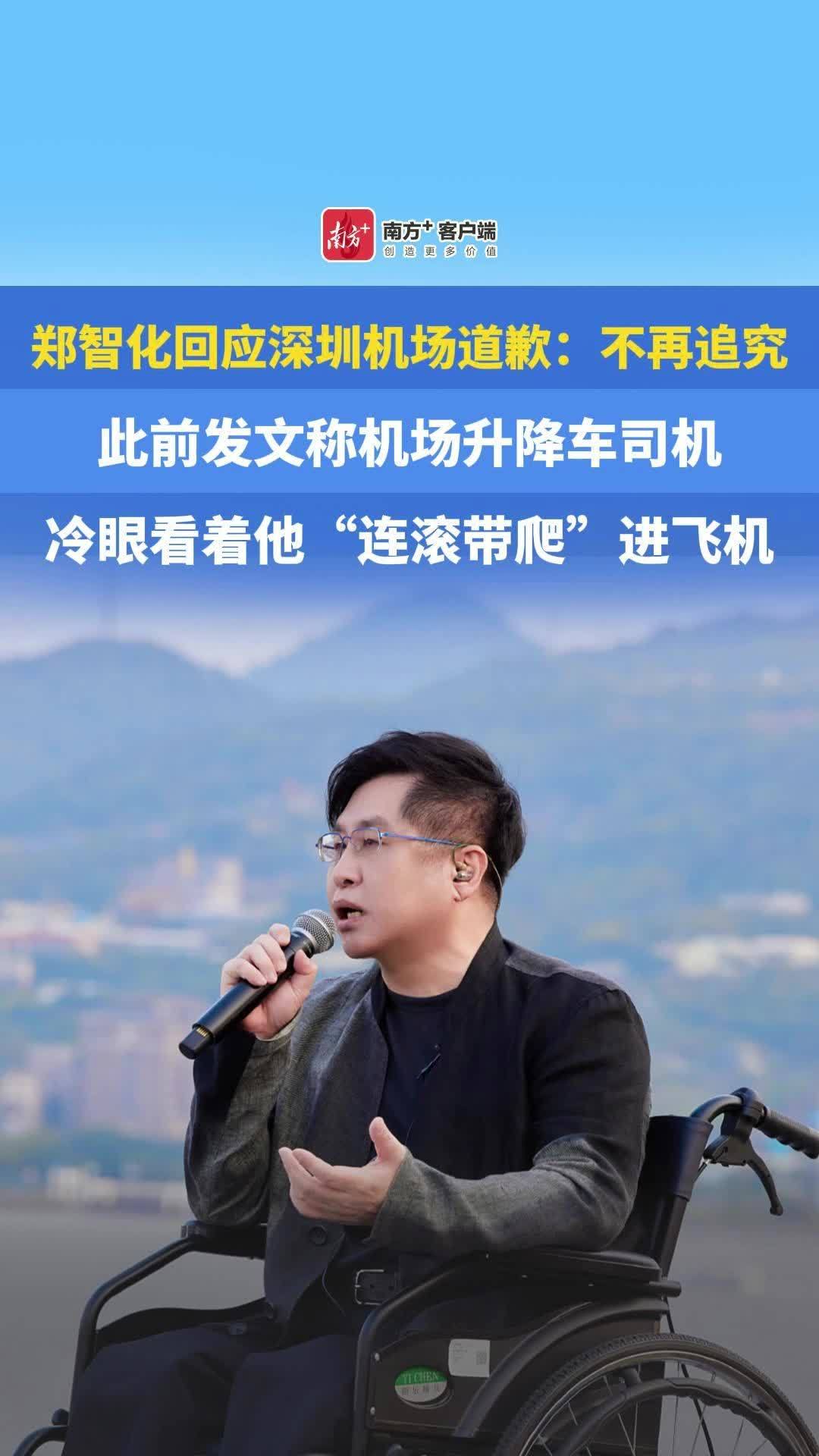 10月26日,歌手郑智化在微博发文回应“深圳机场致歉”称,深圳机场已经对他个人提出道歉,他不再追究此事,只希望借由此事,深圳机场能优化对残疾人士的服务和协助。