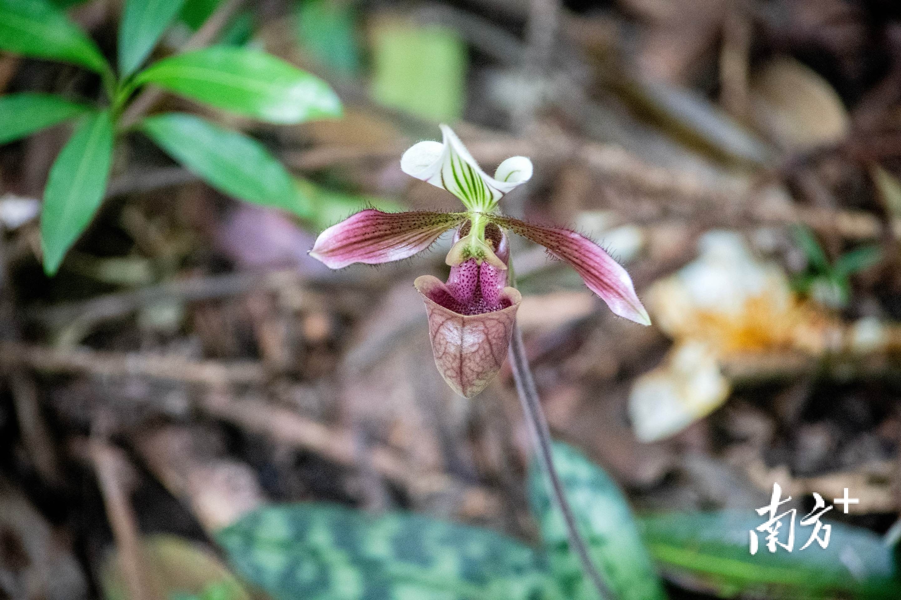 茂名河尾山市级自然保护区管理所所长李芝书介绍,为守护这一珍贵物种,保护区科研人员对紫纹兜兰展开了系统性研究,定期深入山谷为部分植株建立生长档案,并通过长期巡护监测,精准掌握其分布范围与生长习性,同时严控人为干扰,强化林场护林员管理,增加护林员巡护力度,逐步建立起一套全方位、多层次的科学保护体系,为紫纹兜兰营造了稳定、安全的生长繁育环境。