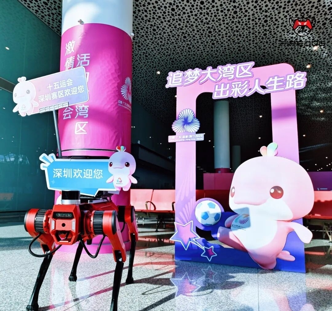 十五运会深圳赛区现场,能领路、能负重的机器人上岗。图源:青春宝安