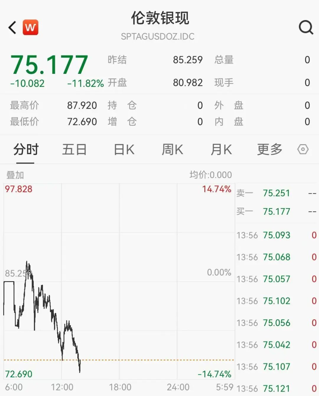 受此影响,国内期货市场上,黄金期货主力合约沪金2604一度跌超15%,触及1016元/克;此外,沪银主力合约跌停。