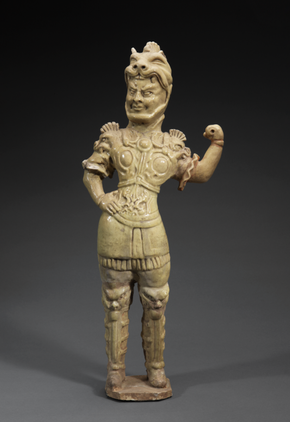 陶淡黄釉彩绘武士俑,隋。来源/故宫博物院
