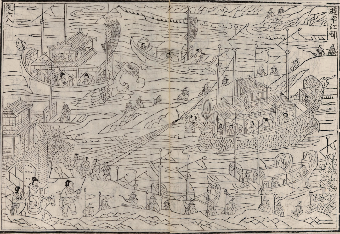 隋炀帝游幸江都图。来源/《帝鉴图说》,作者(明)张居正