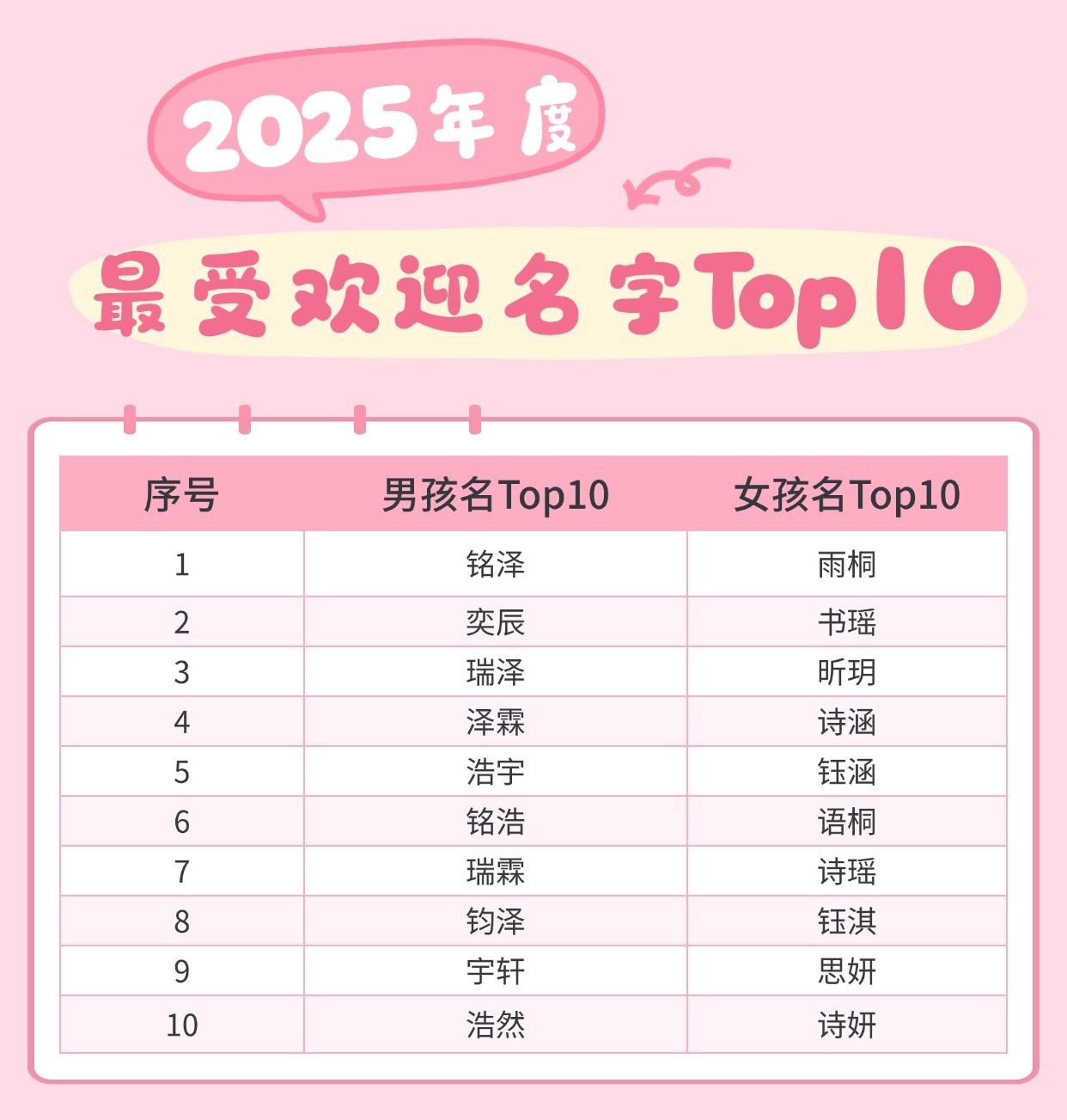 〖风云榜〗2025年度最受欢迎名字Top10