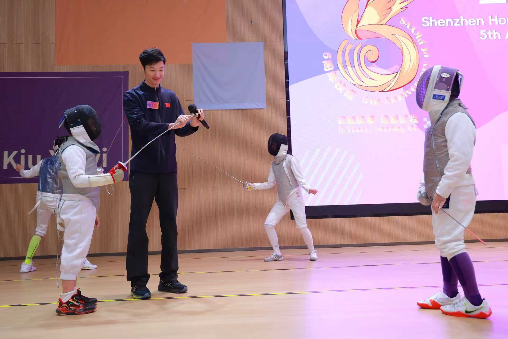 当体育精神与湾区梦想相遇,会碰撞出怎样的火花?日前,深圳香港培侨书院龙华信义学校以一场盛大而热烈的联校运动会,为五周年校庆写下生动注脚。活动不仅汇集粤港澳大湾区四所培侨院校近千名学子与家长,更特邀两位奥运“剑客”——2024年巴黎奥运会女子重剑冠军江旻憓与2012年伦敦奥运会男子花剑冠军雷声亲临现场,与师生零距离互动,以体育为纽带,深化深港情谊,探索湾区教育协同发展的创新路径。
