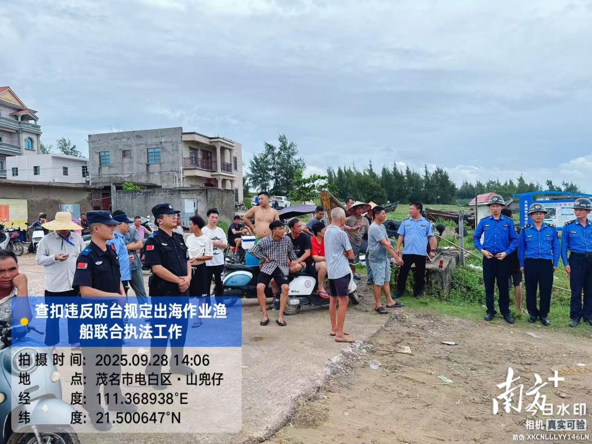 9月28日,茂名滨海新区渔船安全生产管理工作联席会议办公室对今年第18号台风“桦加沙”应急响应期间,违反防台指令提前出海涉渔乡镇船进行联合执法行动,茂名滨海新区农业农村局、海洋综合执法大队、区公安分局、城管执法分局、滨海海警工作站及电城镇等相关部门50多名执法人员参与。