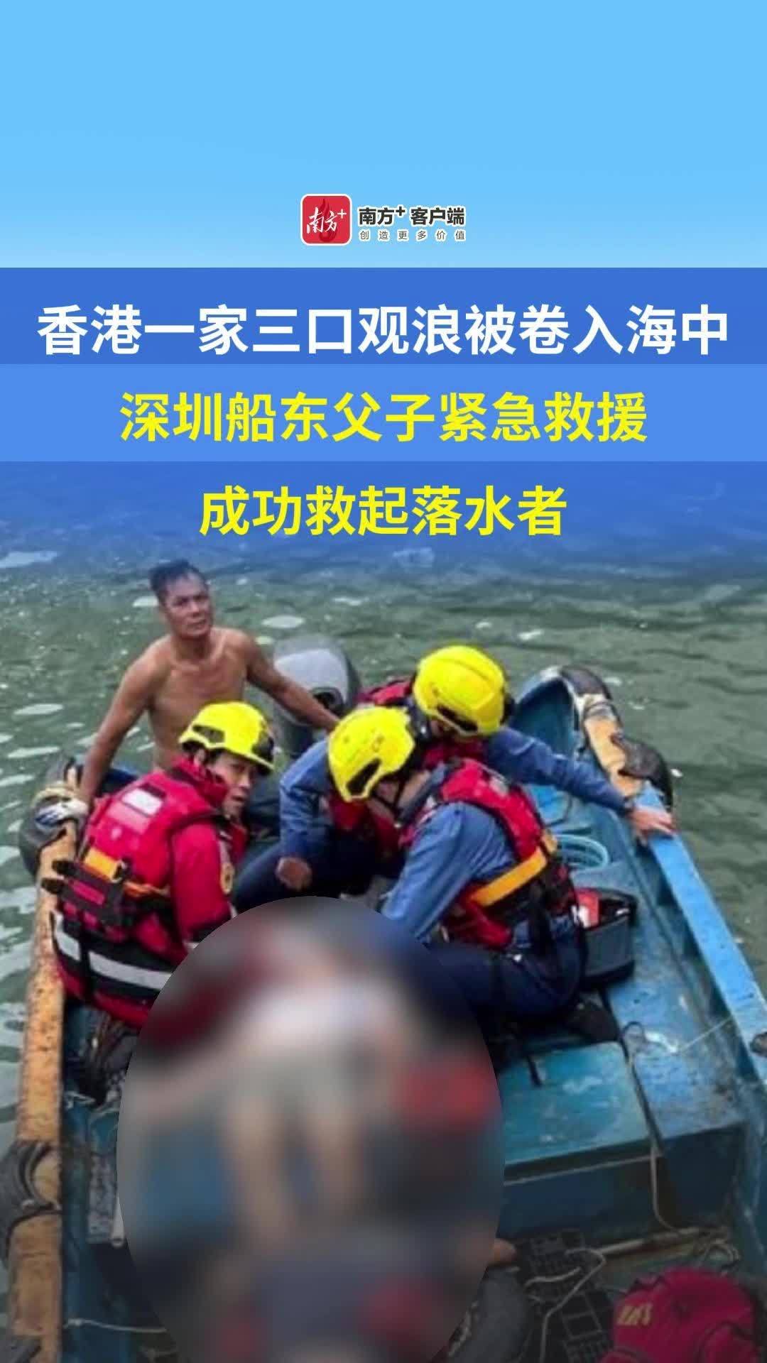 香港一家三口观浪被卷入海中,深圳船东父子紧急救援