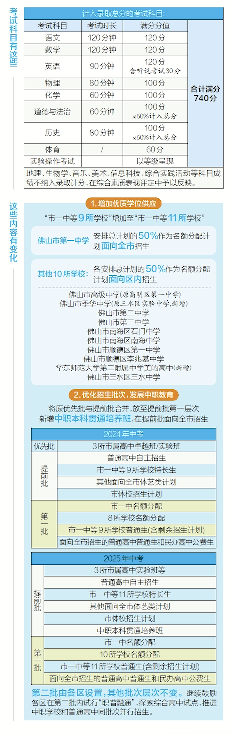 经佛山市政府同意,佛山市教育局于2月28日发布了《佛山市2025年高中阶段学校招生考试工作意见》(下称《工作意见》)。