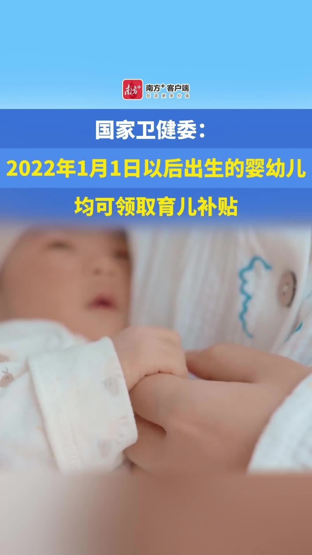 国家卫健委:2022年1月1日以后出生的婴幼儿均可领取育儿补贴