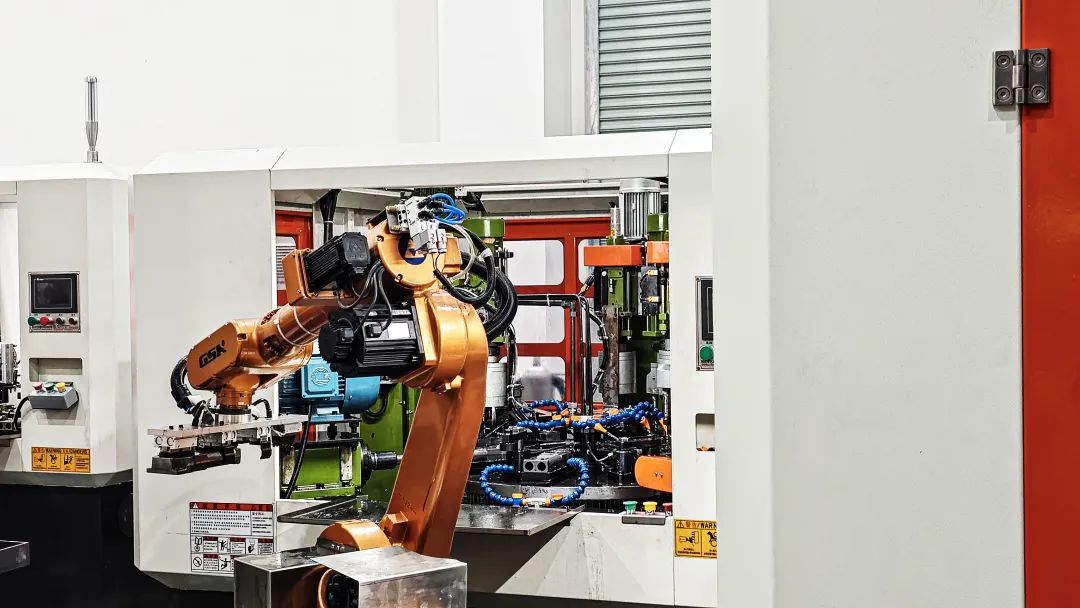 新甘安五金精密制造有限公司双缸机器人自动化生产线。梁诗茗 摄