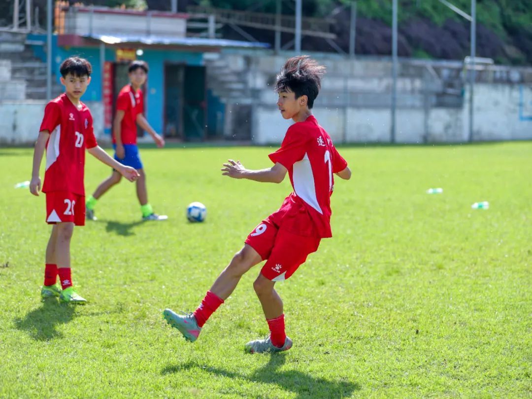 夏日里,正在球场上训练的逐梦少年俱乐部的球员们。邓达荣摄